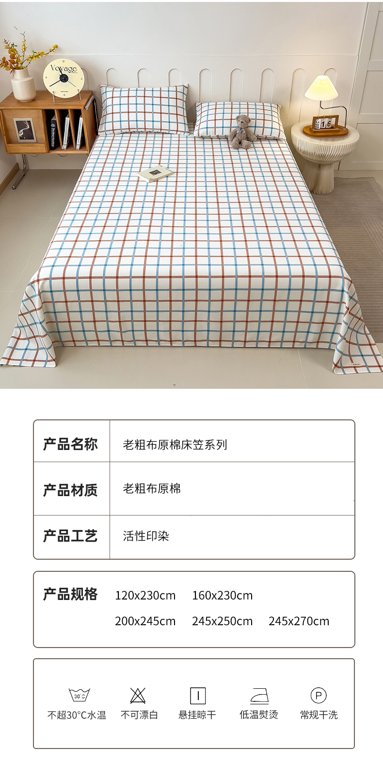 芃成家纺 2026新款老粗布单床单 绅士品格