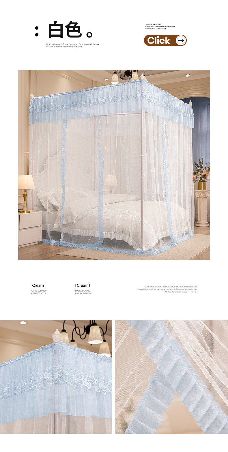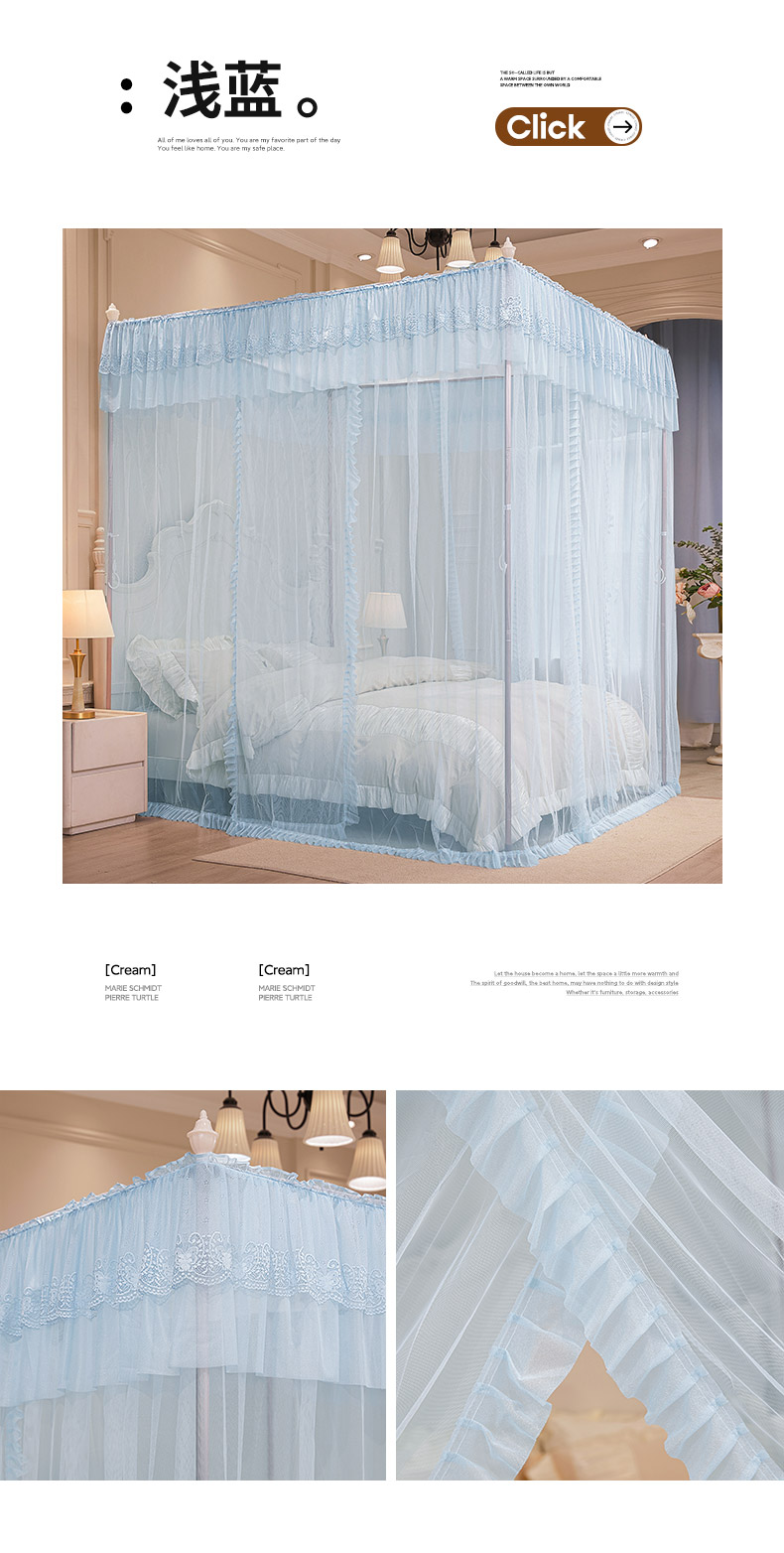 • 91家纺网 家纺一手货源 找家纺 (总)海虹蚊帐 2026新款2601外穿杆三开U型门一体防尘顶加密纱回底床笠款防摔蚊帐,彩虹蓝,幸运灰,幸运蓝,字母灰,字母咖