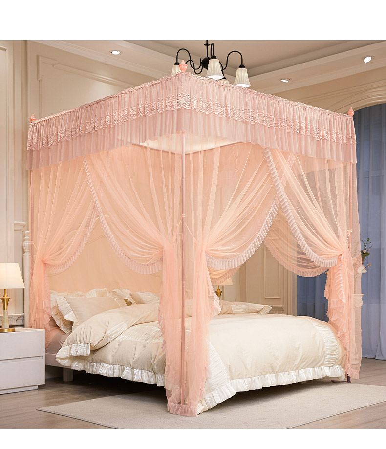 • 91家纺网 家纺一手货源 找家纺 (总)海虹蚊帐 2025新款加高内穿U型三门2402保暖款夹棉防尘顶坐床蚊帐,米色,浅粉,浅米咖