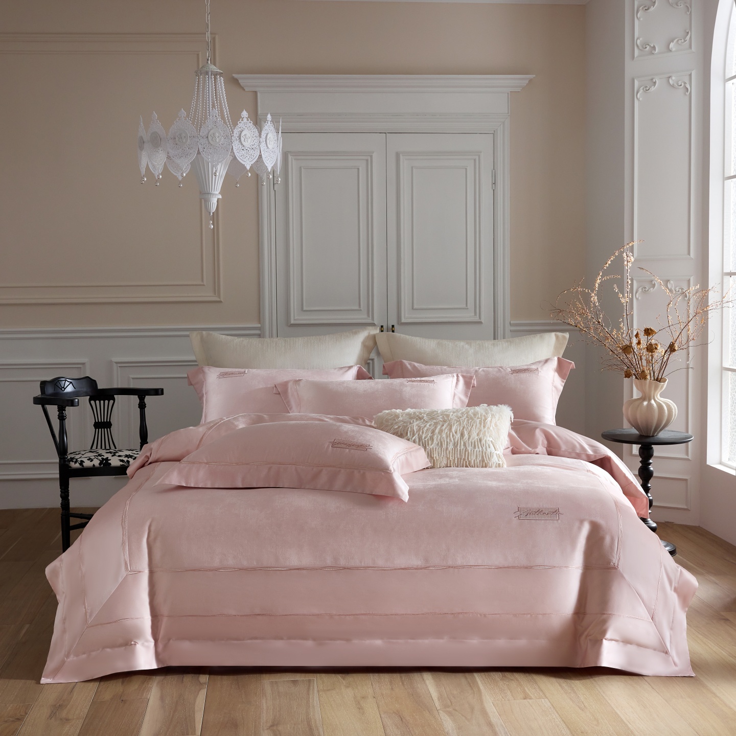 (总)榻尚家居 2024新款天丝棉法式镂空工艺款镂空四件套--云绡(会员减20),豆沙色,金芥色,优雅灰,月光绿,珍珠白,珠玉粉