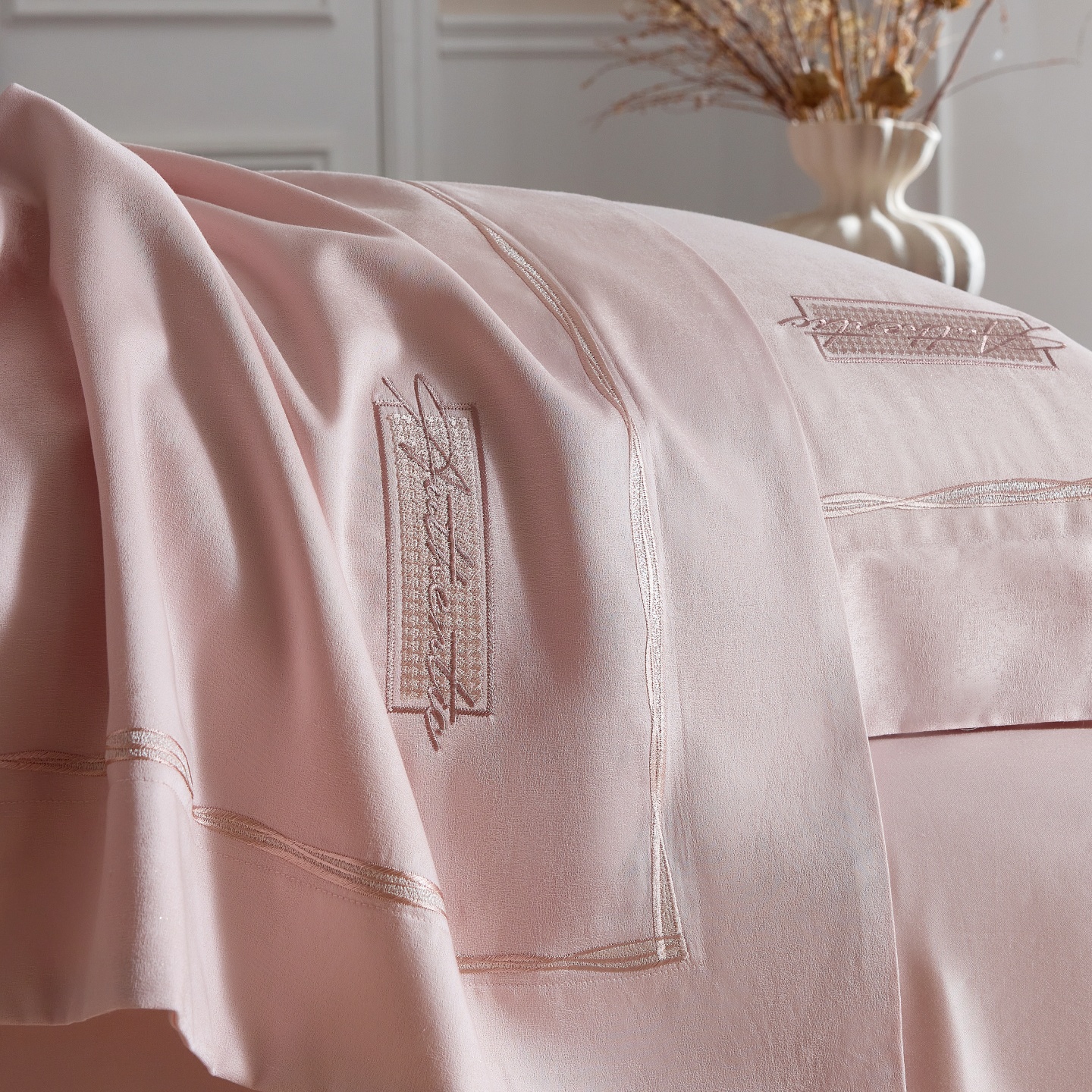 (总)榻尚家居 2023新款纯棉贡缎提花四件套(会员-10),缤兰,烟粉