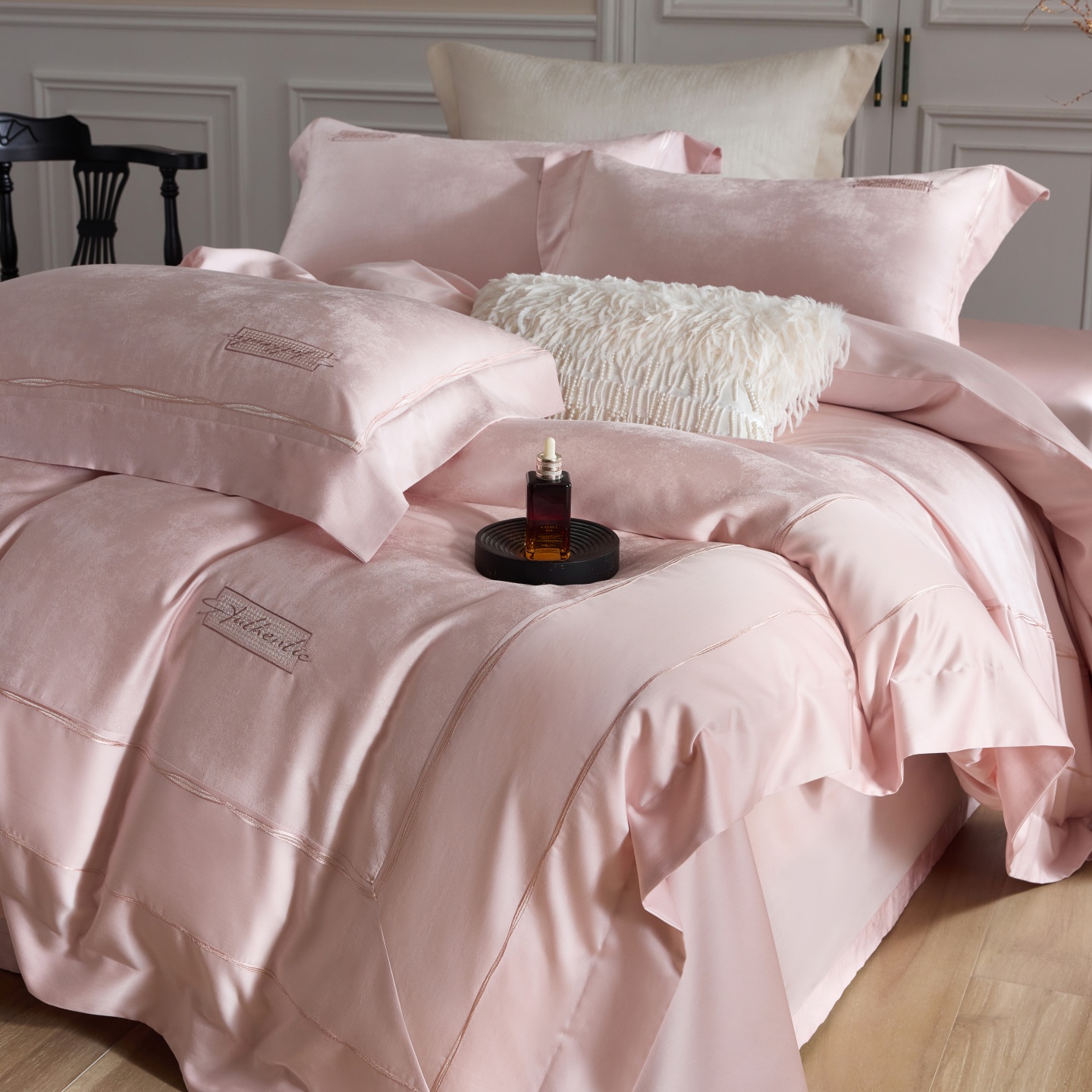 (总)榻尚家居 2025新款婴肤牛奶绒拼色工艺绣花四件套-米菲,米菲-典灰,米菲-粉橘,米菲-米白,米菲-暖驼,米菲-藤紫