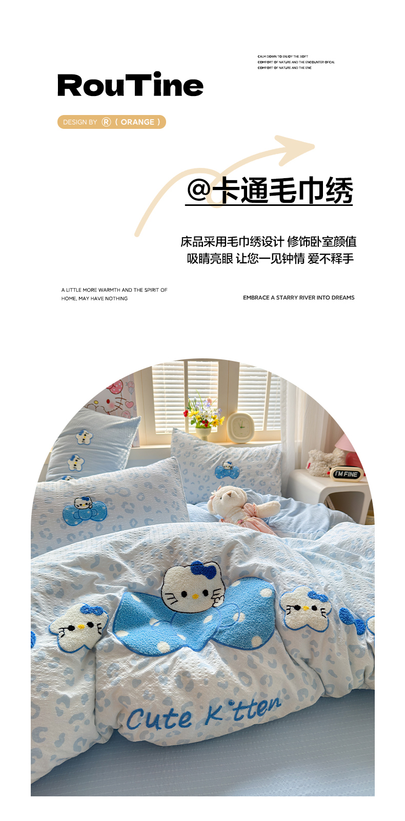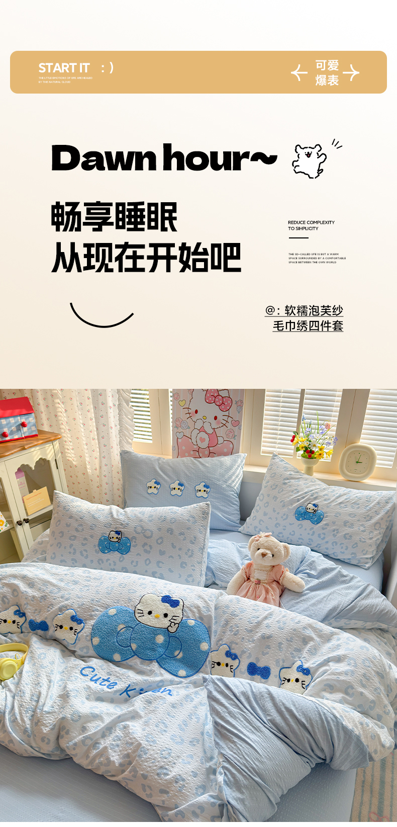 当前位置: 91家纺网 > 商品网购 > 床品套件 > 四件套 > 其它四件套 > 优承佳生活馆 2026新款高克重超柔泡芙双层纱面料卡通毛巾绣三件套四件套单被套系列 蝴蝶结蓝kt