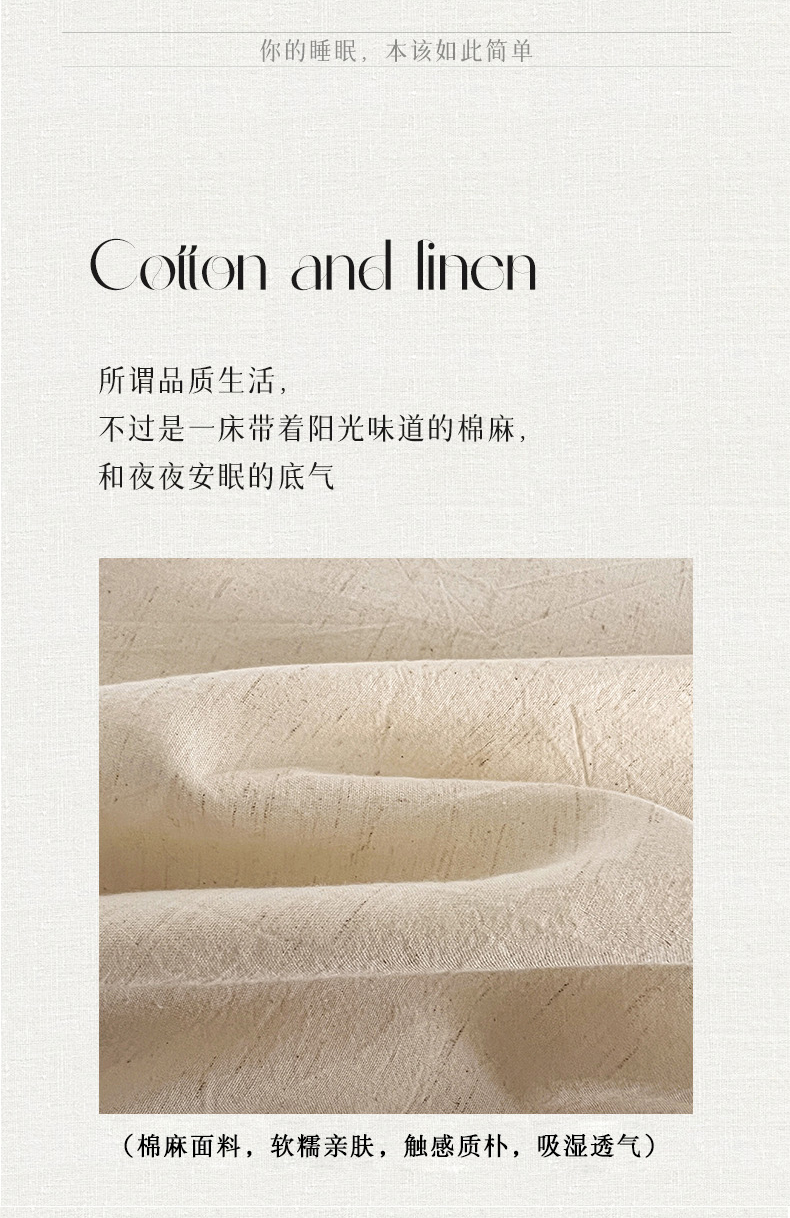 商品名称:橙子家居 2026新款全棉棉麻绣花被套棉花床盖四件套 棉麻-本色