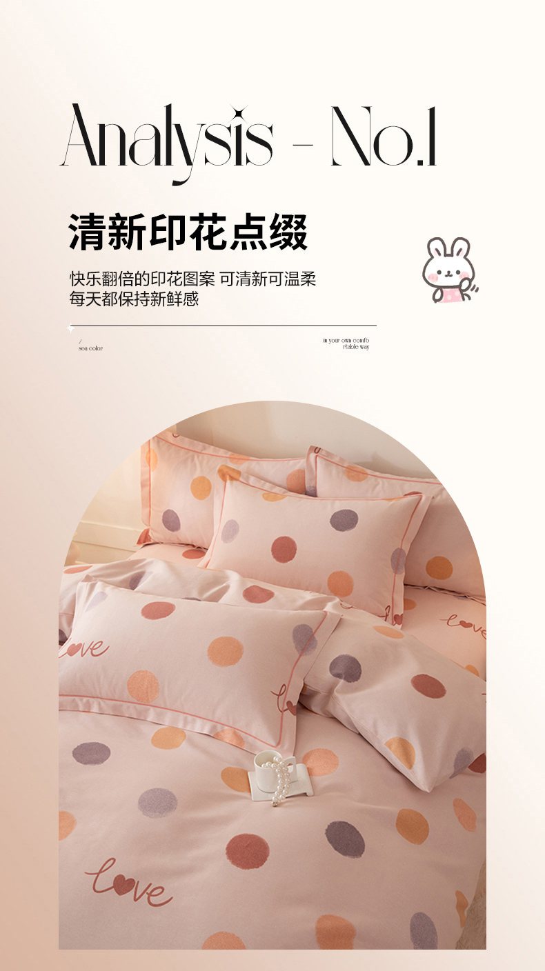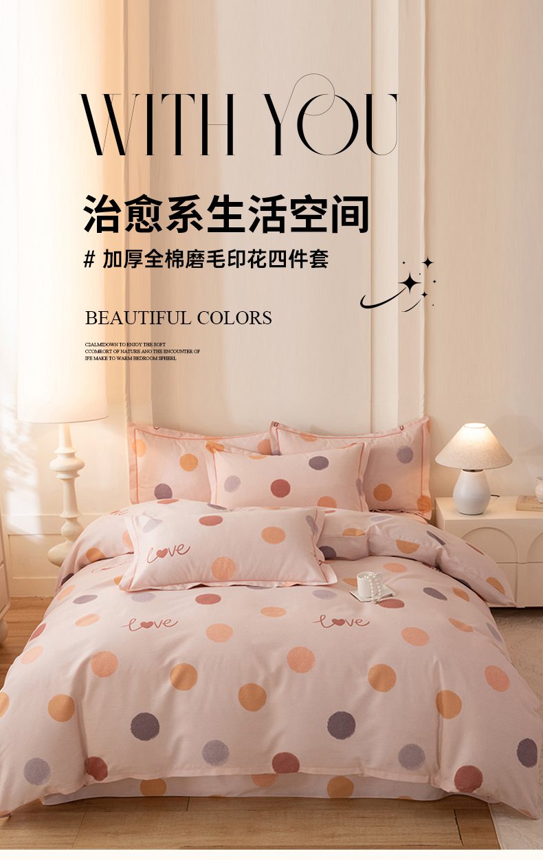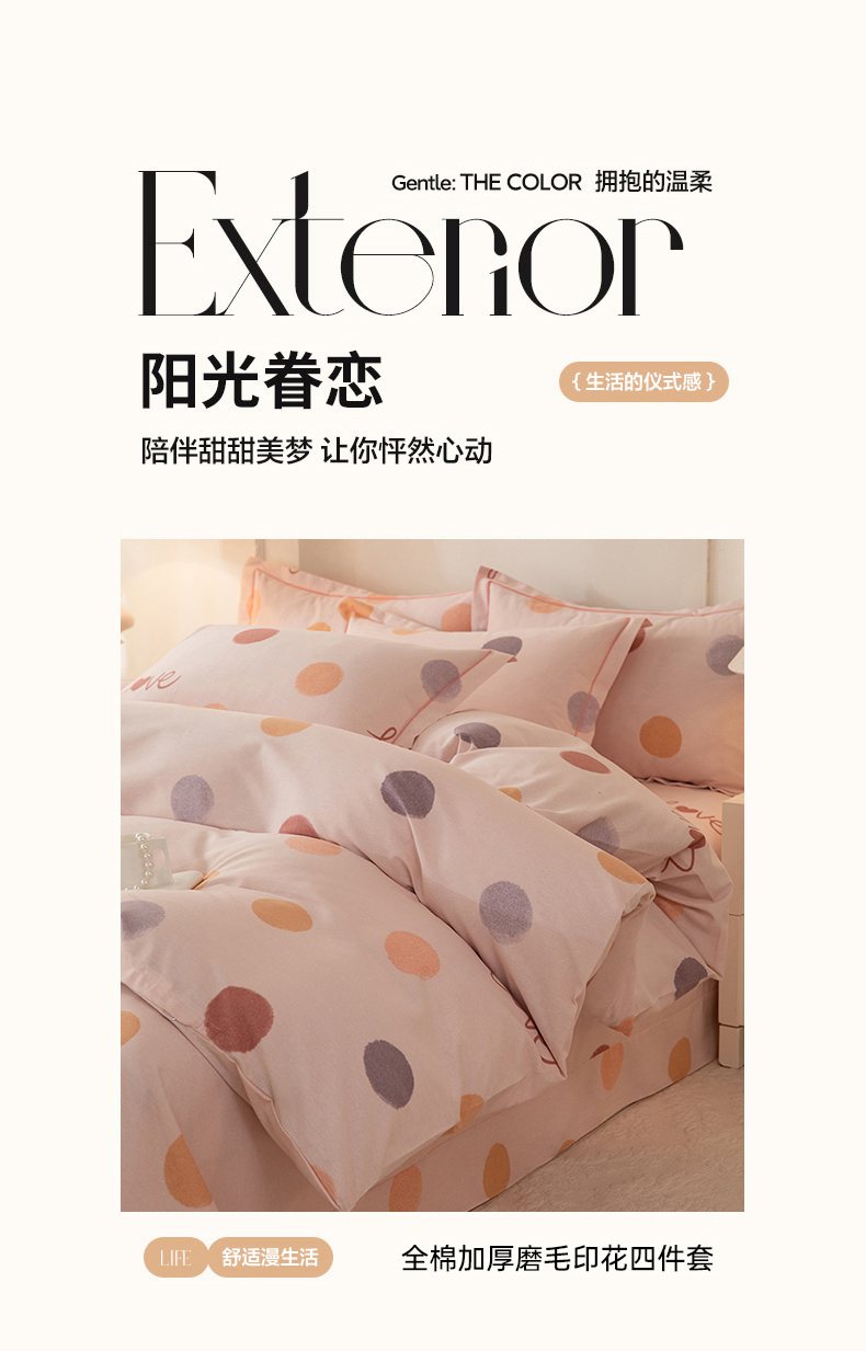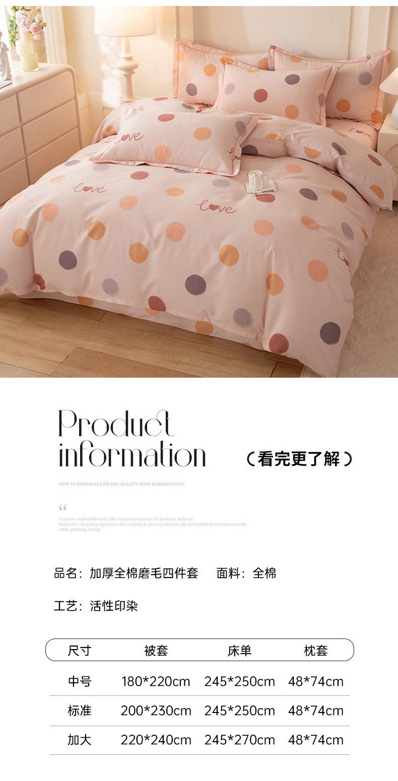 商品名称:磨毛世家家纺 2026新款铂金磨毛纯棉加厚全棉磨毛四件套 波点-粉