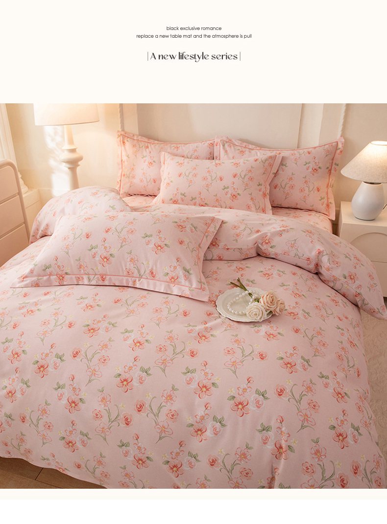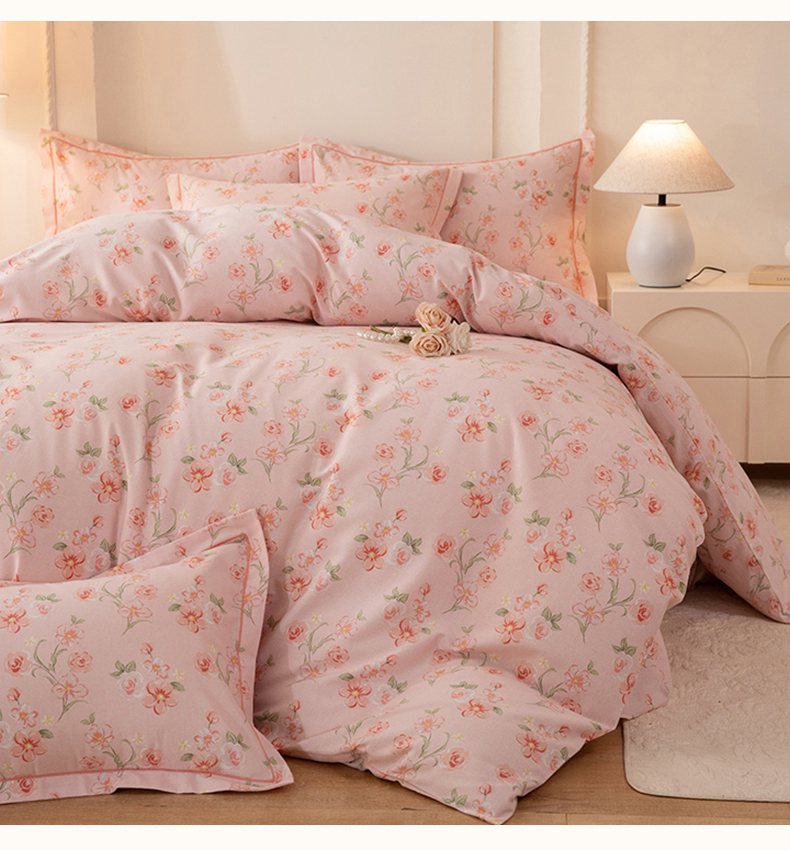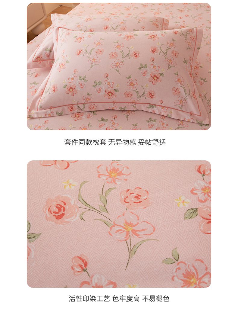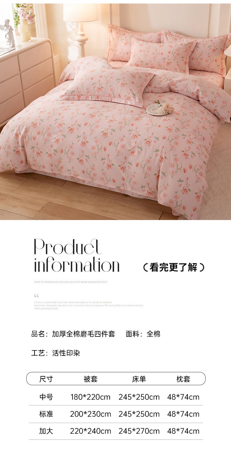 商品名称:磨毛世家家纺 2026新款铂金磨毛纯棉加厚全棉磨毛四件套 香雪海-粉