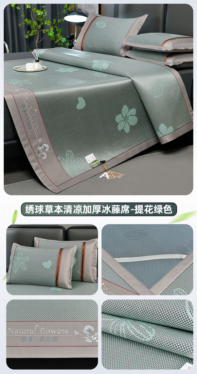 当前位置: 91家纺网 > 商品网购 > 床上用品 > 凉席 > 凉席套件 > 小牛席业 2026新款加厚款-绣球草本清凉冰藤席系列凉席藤席冰藤席冰丝席竹席乳胶席乳胶凉席凉感豆豆席 加厚款-绣球草本清凉冰藤席(提花浅灰
