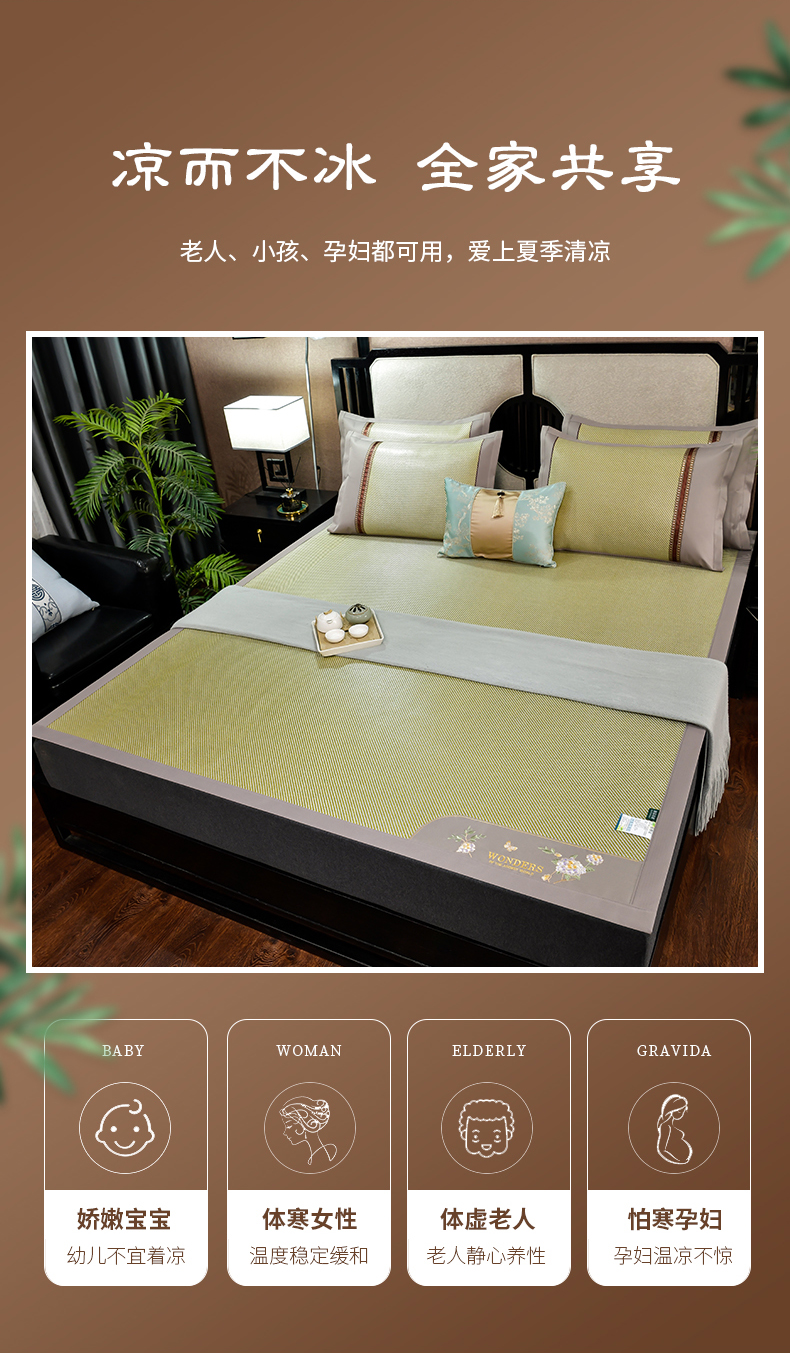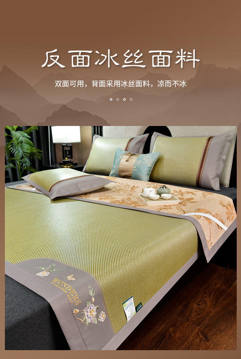 2023新款夏日冰点-冰藤双面席凉席藤席竹席冰丝席乳胶席,咖色,蓝色,绿色,香槟
