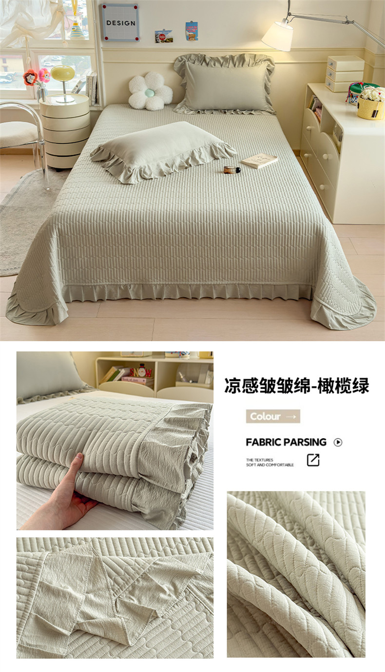 (总)兄弟坊 2026新款韩版凉感皱皱绵花边款加棉床盖 床护垫 加棉床单,凉感皱皱绵-天空蓝,凉感皱皱绵-橄榄绿,凉感皱皱绵-香芋紫,凉感皱皱绵-烟灰,凉感皱皱绵-玉色,组合