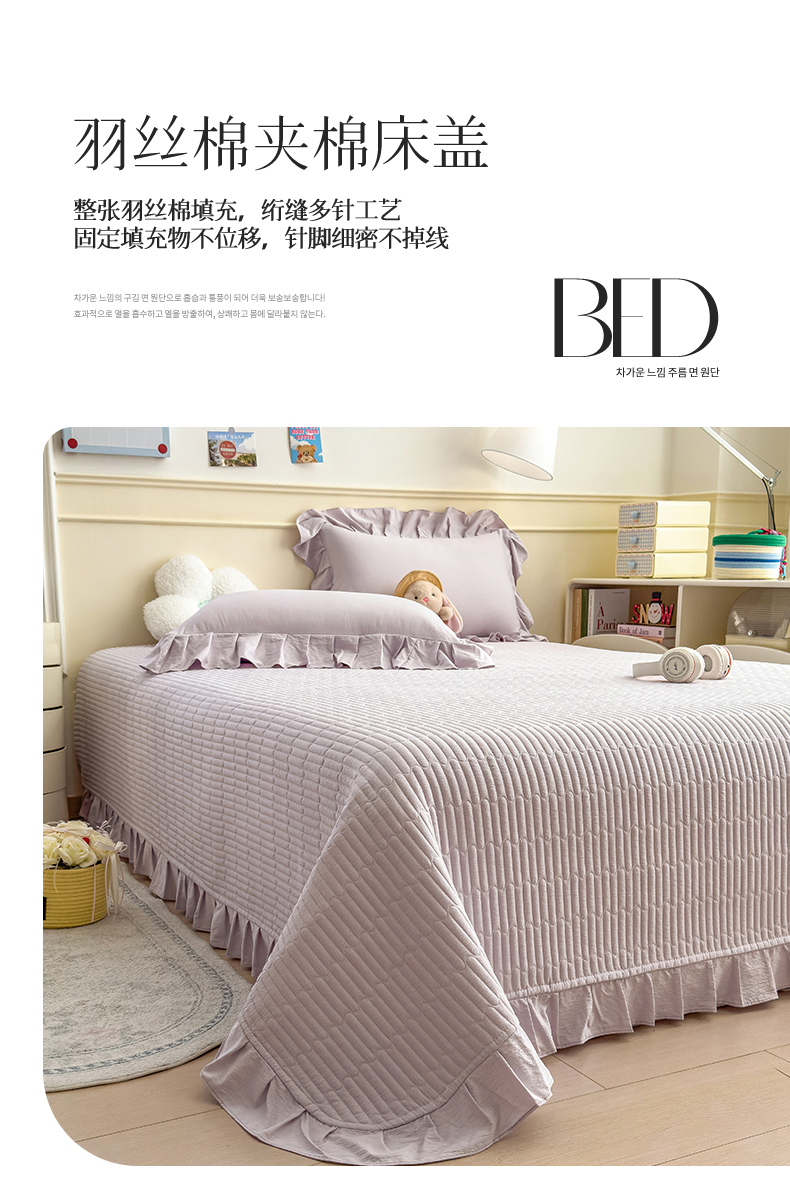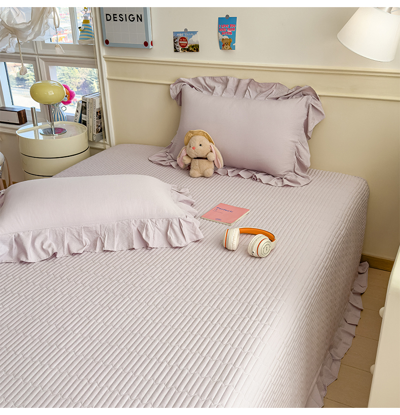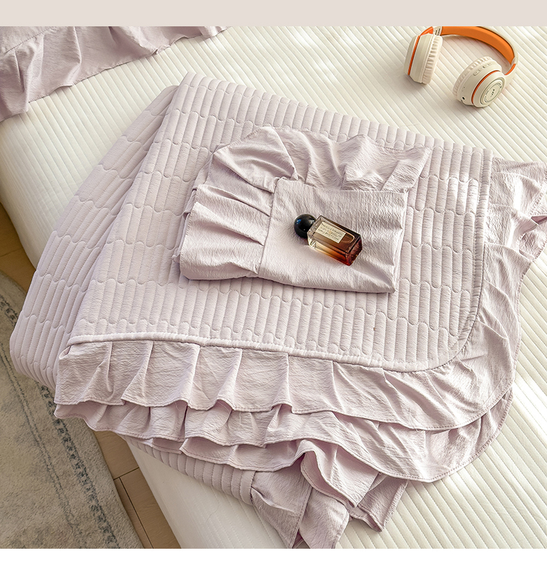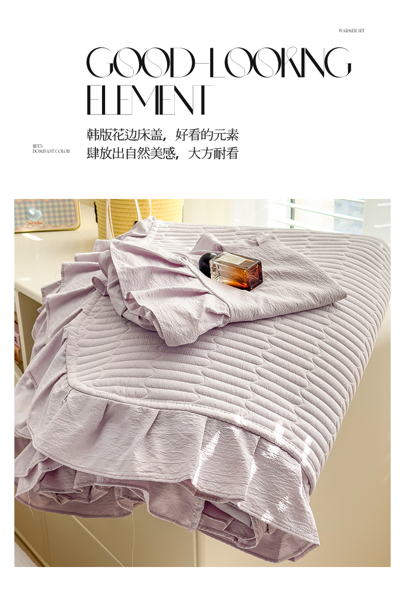 商品名称:兄弟坊 2026新款韩版凉感皱皱绵花边款加棉床盖 床护垫 加棉床单 凉感皱皱绵-香芋紫
