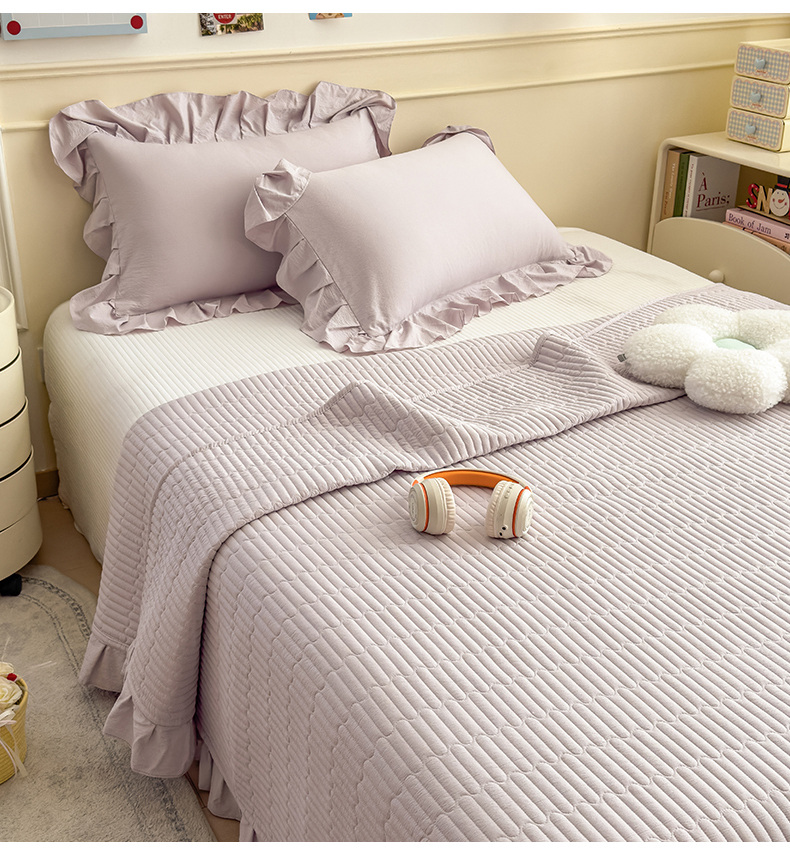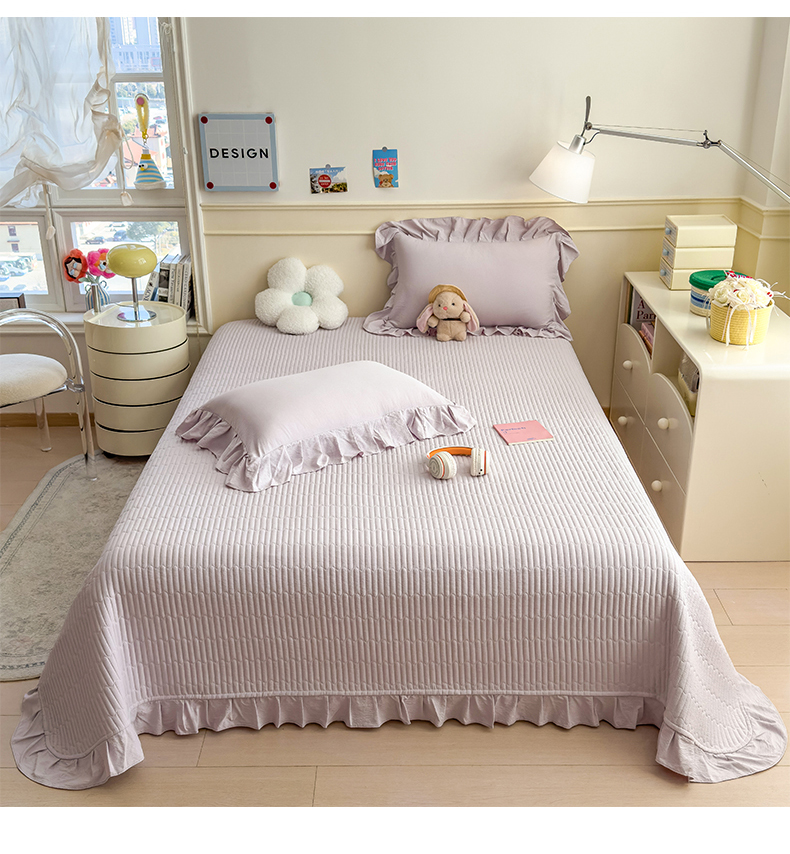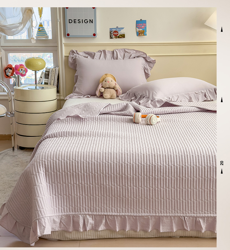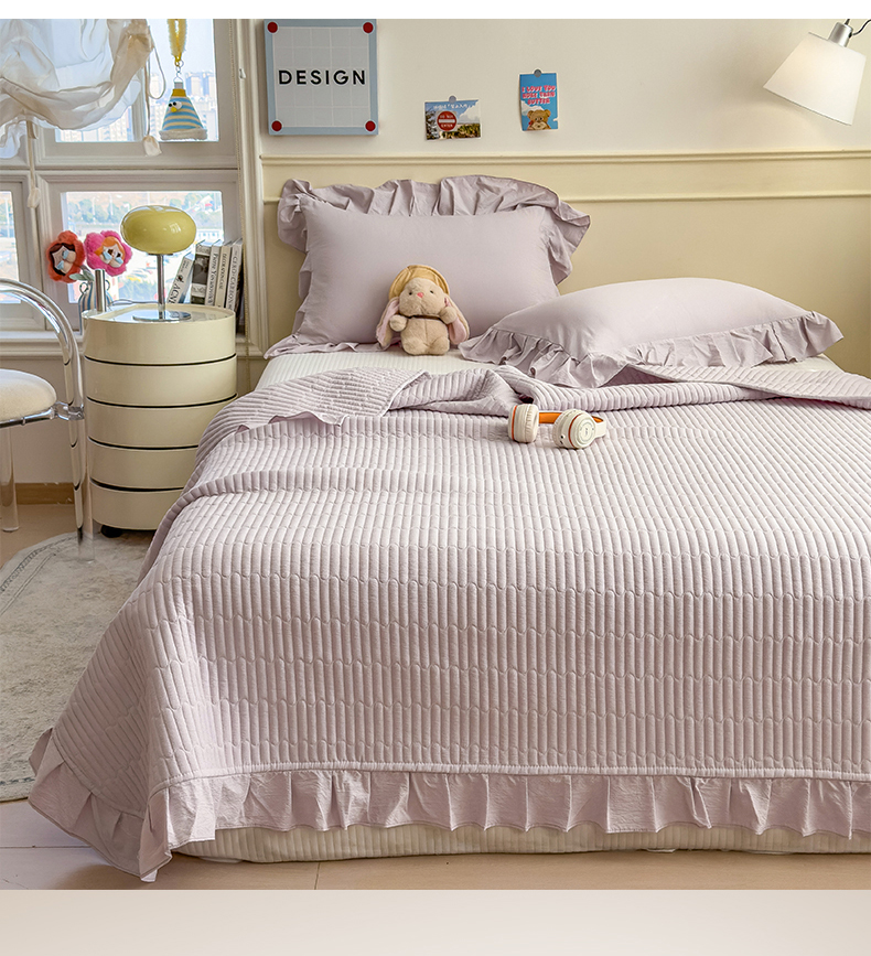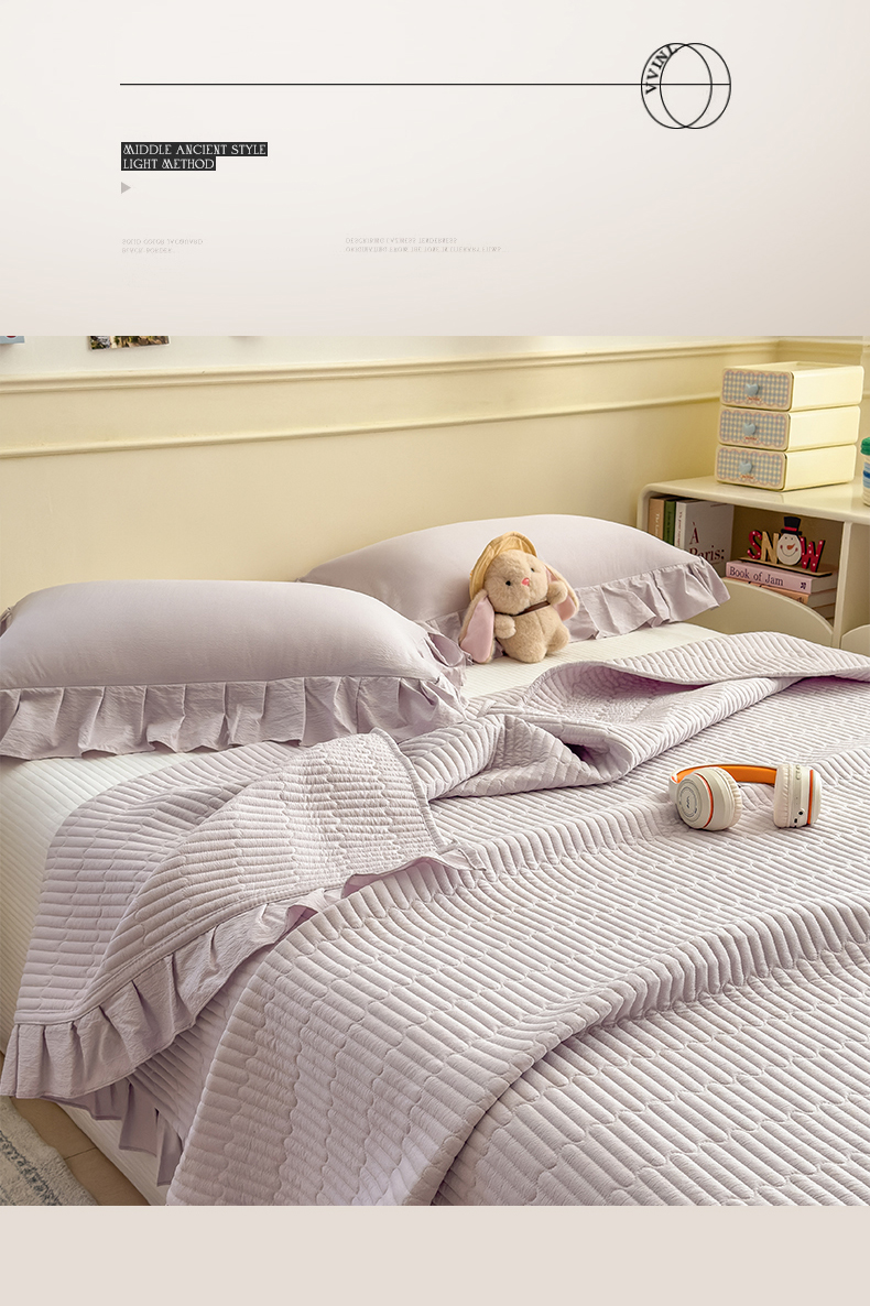 商品名称:兄弟坊 2026新款韩版凉感皱皱绵花边款加棉床盖 床护垫 加棉床单 凉感皱皱绵-香芋紫