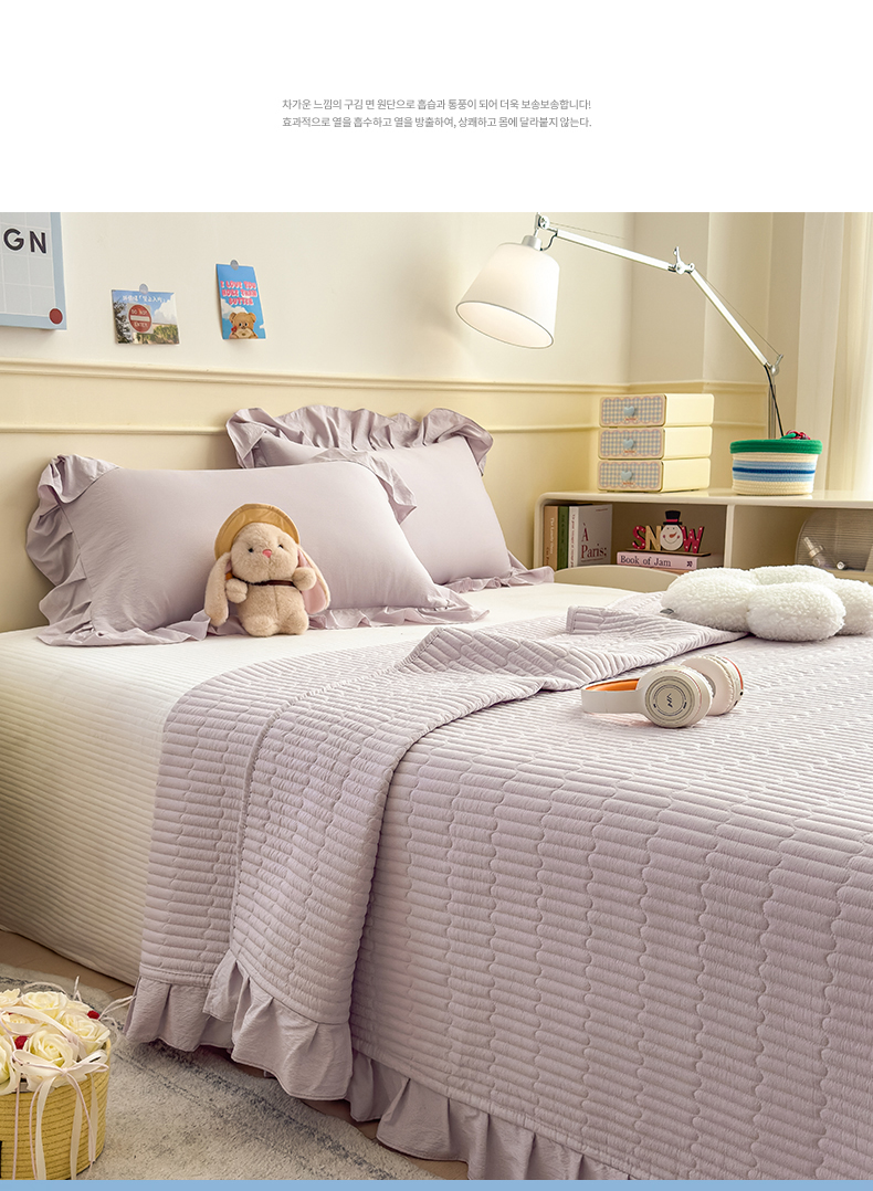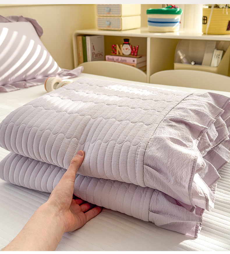 兄弟坊 2026新款韩版凉感皱皱绵花边款加棉床盖 床护垫 加棉床单 凉感皱皱绵-香芋紫