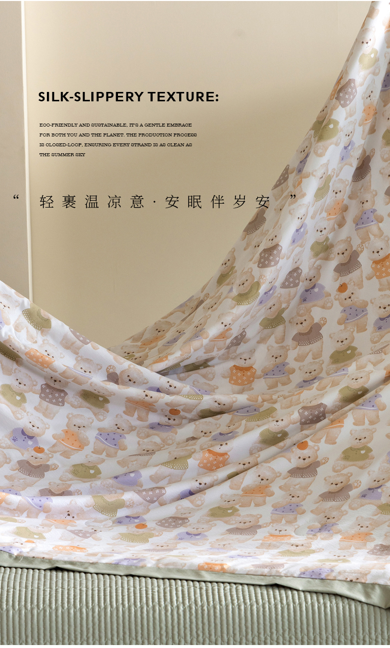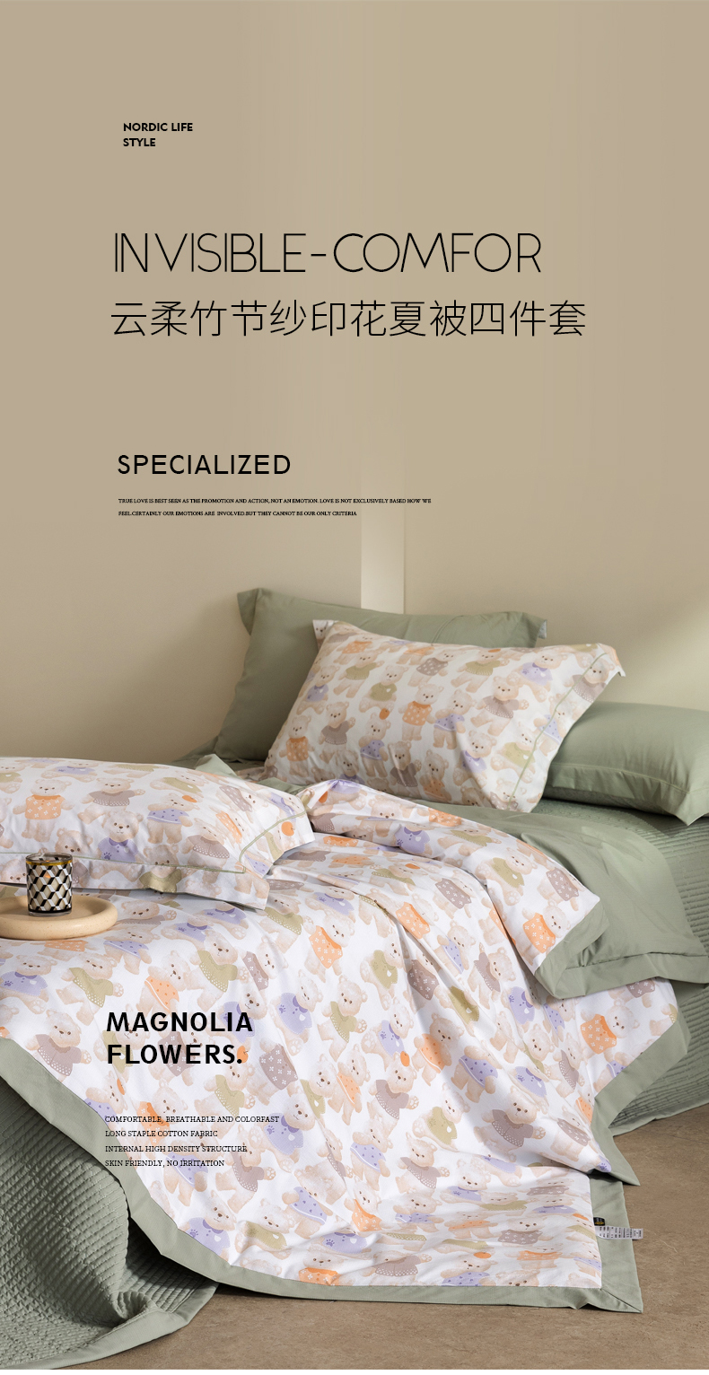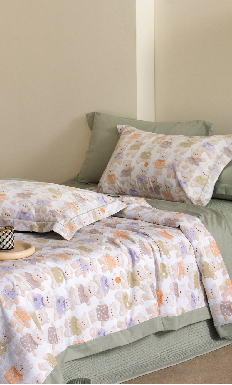 当前位置: 91家纺网 > 商品网购 > 被子 > 夏被 > 立奥被业 2026新品冰丝棉夏被四件套竹节纱夏被四件套 蜜糖熊岛-绿
