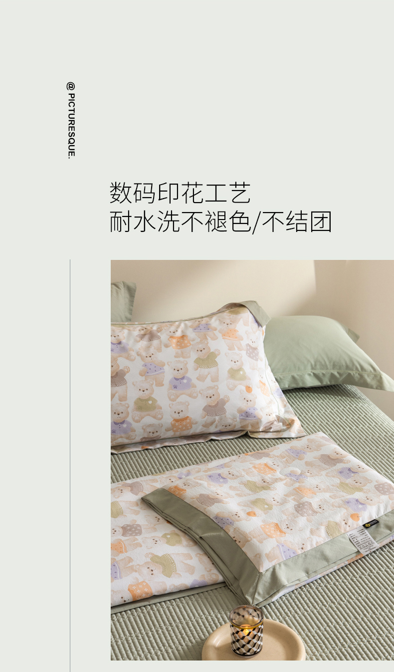 • 91家纺网 家纺一手货源 找家纺 立奥被业 2026新品冰丝棉夏被四件套竹节纱夏被四件套 蜜糖熊岛-绿