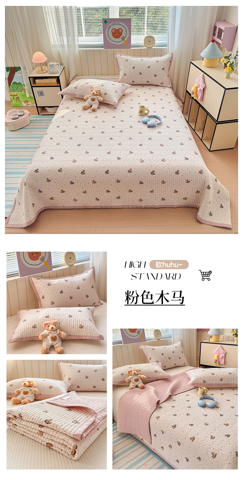 (总)美优兰 2026新款双面全棉高温砂洗床盖三件套,波西米亚,繁花似锦,粉色木马,蓝色熊仔,夕颜蓝,夕颜绿,星冰乐,星星人,熊猫日记,组合