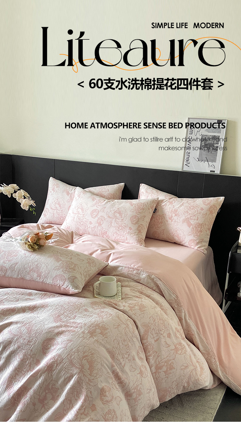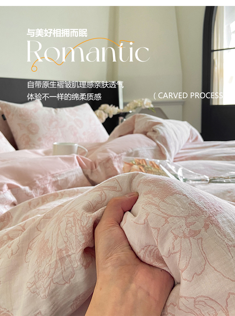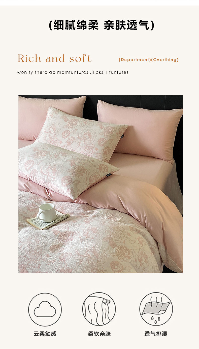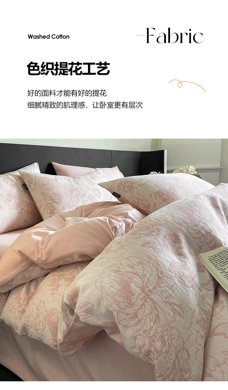 当前位置: 91家纺网 > 商品网购 > 床品套件 > 四件套 > 全棉普通四件套 > 宜代光年 2026新款全棉纯棉60S水洗棉三层纱色织提花四件套系列(经典保留花型) 牡丹-粉