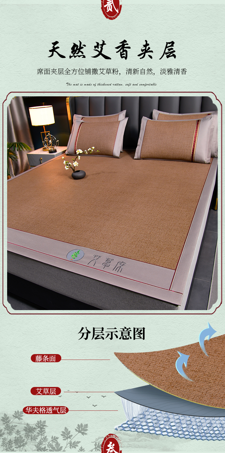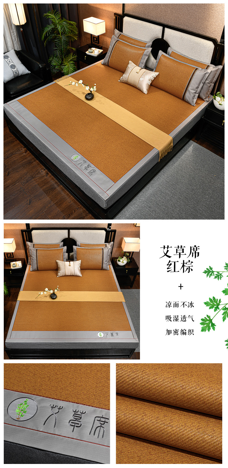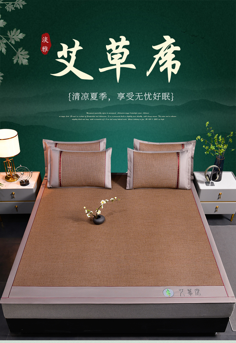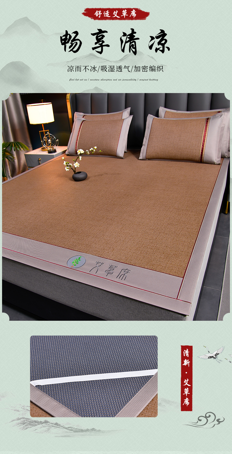 小牛席业 2026新款加厚款-经典艾草养生席系列 艾草席-浅咖
