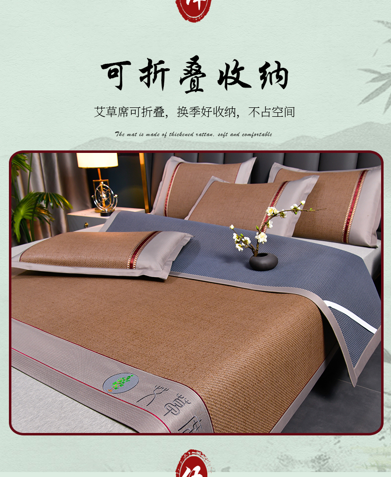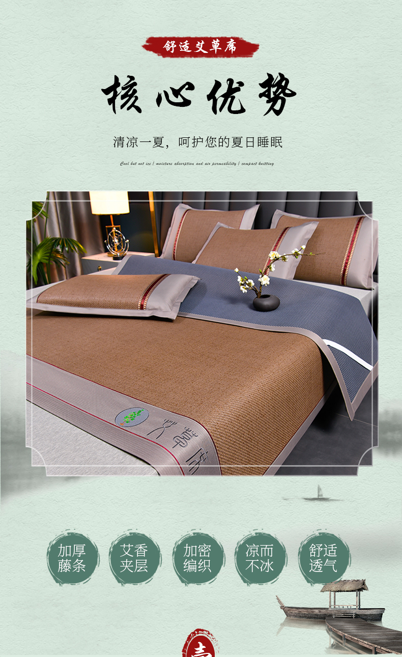 2023新款经典全藤席面艾草养生席冰藤席凉席冰丝席竹席乳胶席空调席,艾草席-冰蓝,艾草席-黑咖,艾草席-红棕,艾草席-黄藤,艾草席-灰色,艾草席-墨绿,艾草席-浅咖,艾草席-亚麻