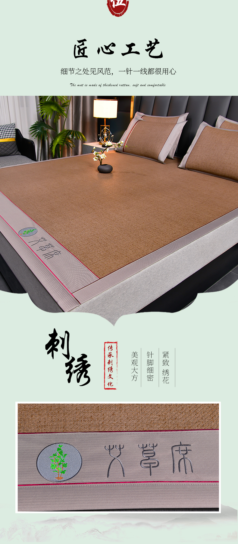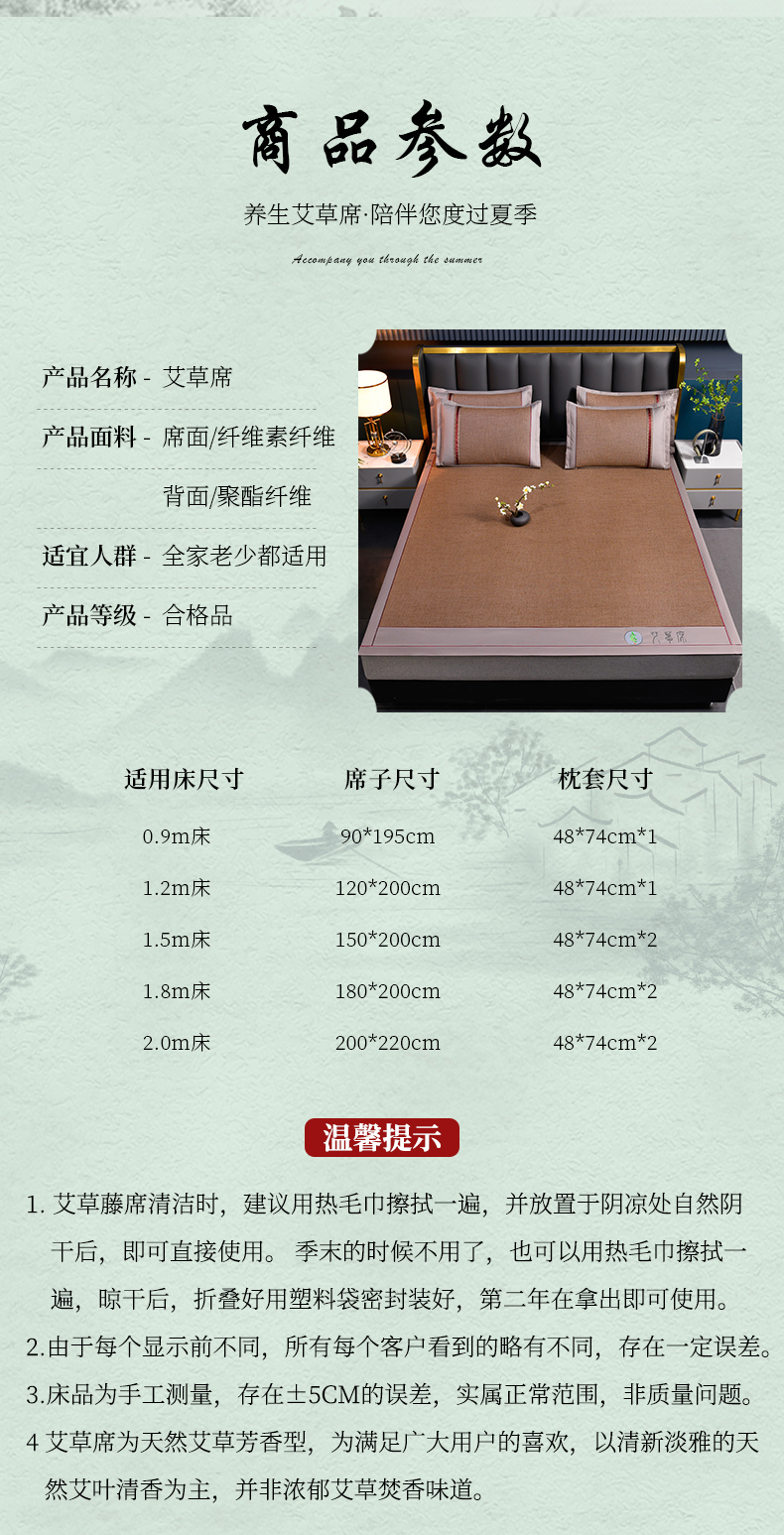 商品名称:小牛席业 2026新款加厚款-经典艾草养生席系列 艾草席-浅咖