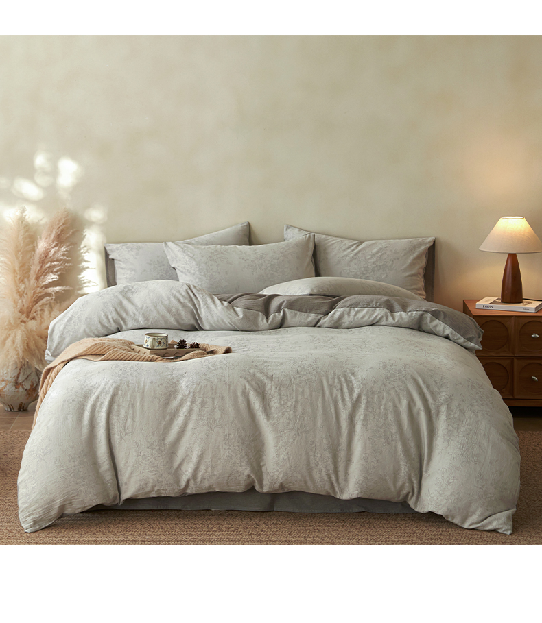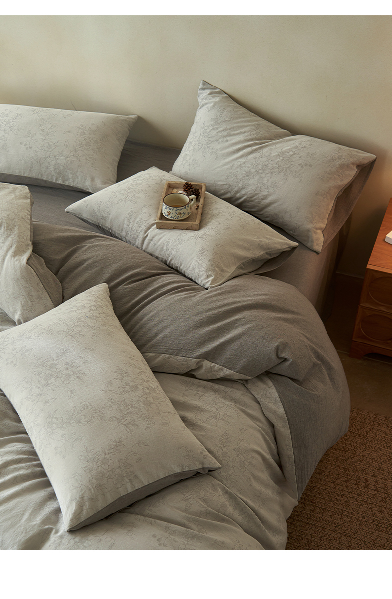 商品名称:如一 2026新款色织提花全棉水洗棉四件套第三批 花忆-灰