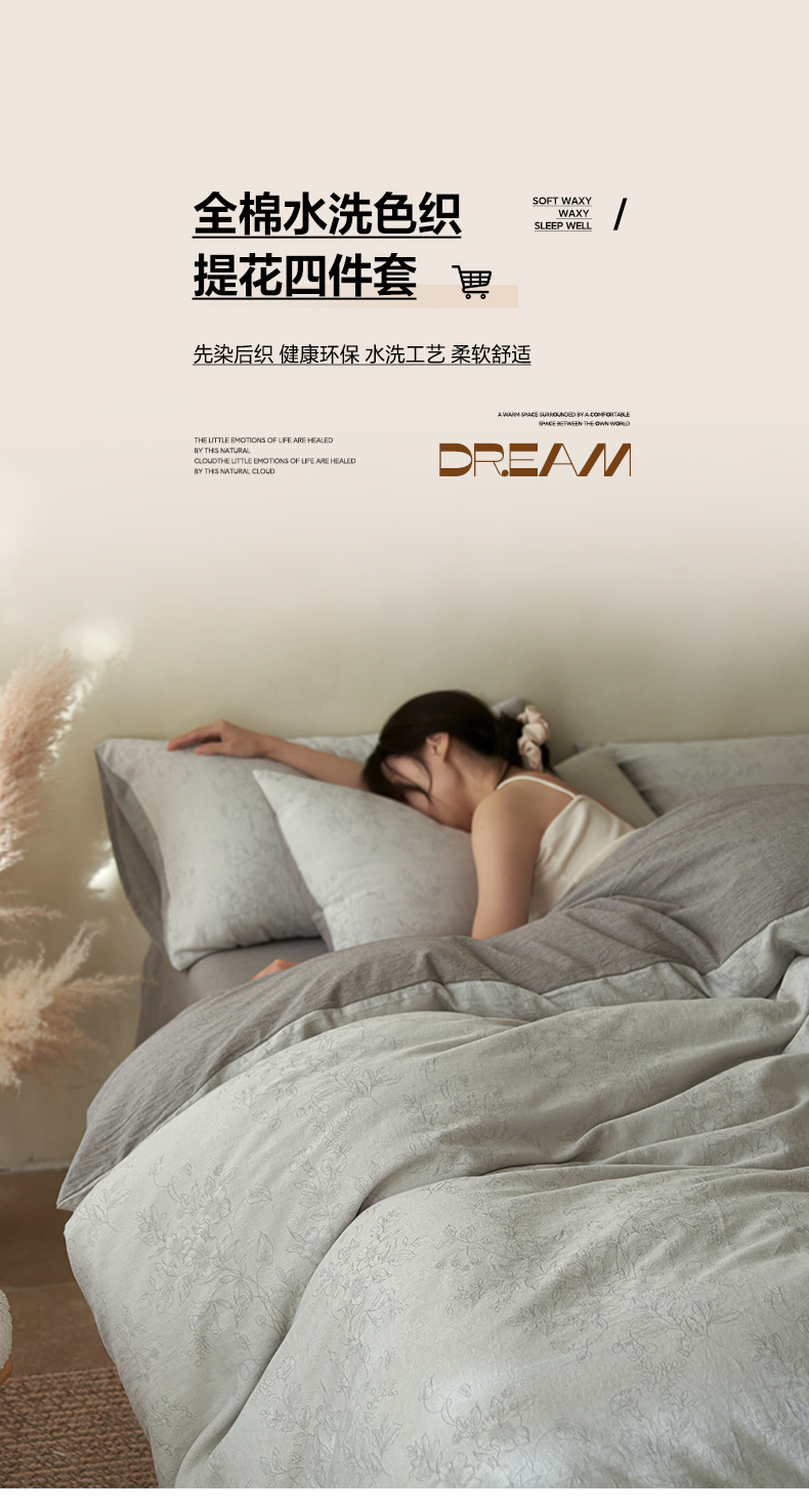(总)如一 2026新款60S全棉水洗提花立体厚织浮雕四件套,肌理-金属灰,肌理-暖杏米,肌理-雅致银,暗香-唯美粉,蝶梦-湖水绿,蝶梦-唯美粉,花蔓-橄榄绿,花蔓-唯美粉,流年-金属灰,迷蝶-奶米杏,迷蝶-唯美粉,香草-淡雅紫,香草-橄榄绿,香草-奶昔白,腰果-金属灰,腰果-奶米杏,叶韵-云水蓝