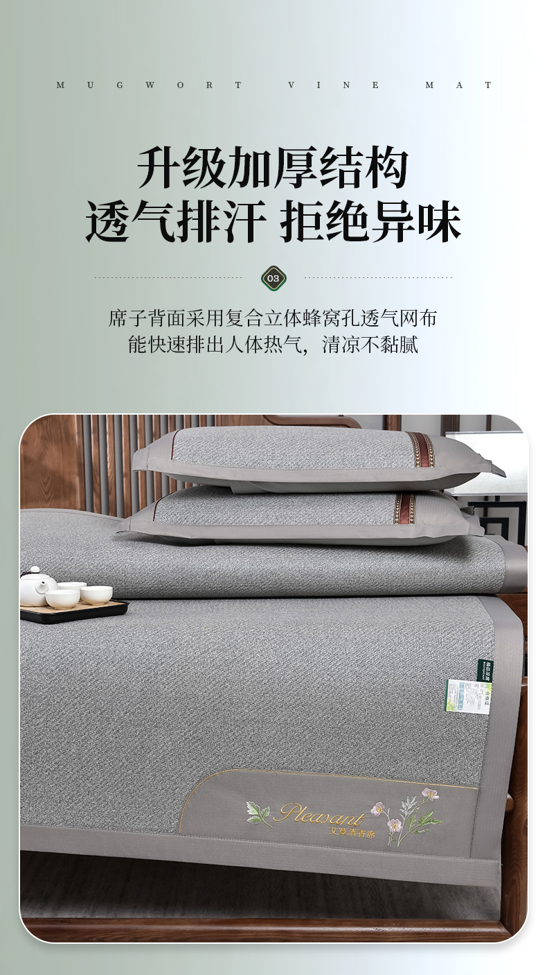 当前位置: 91家纺网 > 商品网购 > 床上用品 > 凉席 > 藤席 > 小牛席业 2026新款加厚款-艾草清香养生席系列(全藤席面) 加厚款-艾草清香养生席(灰色)