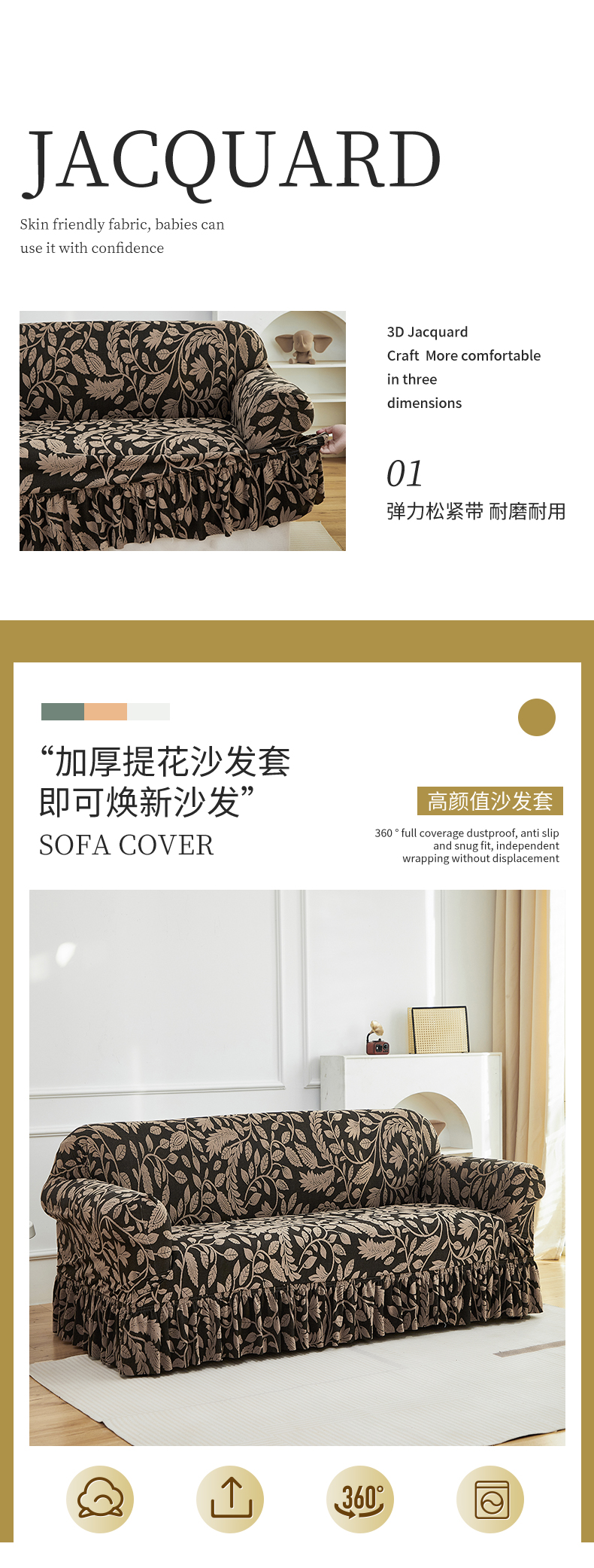 (总)逐日沙发套 2026新款提花系列-沙发套裙摆款