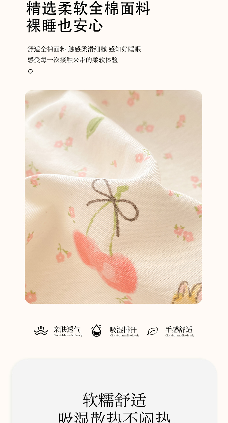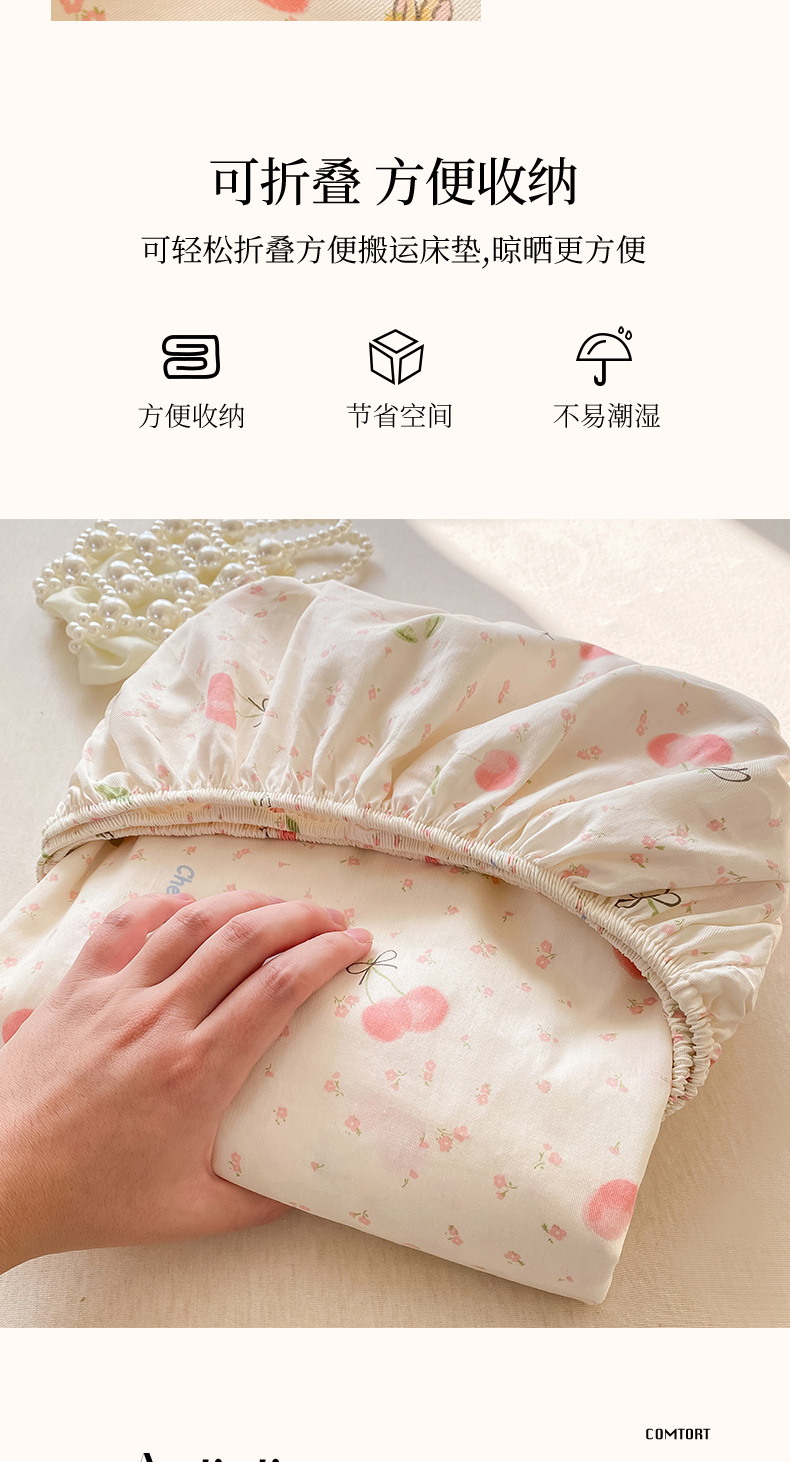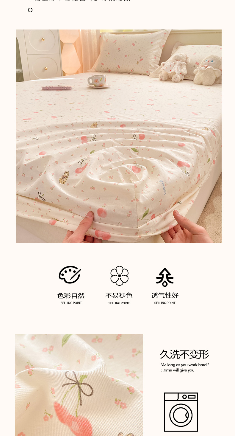 商品名称:女子家纺 2026新款全棉纯棉印花小清新系列单床笠单品床笠床笠单件 樱桃甜宠