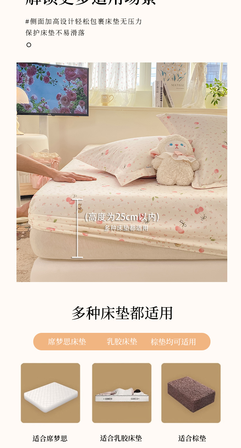 女子家纺 2026新款全棉纯棉印花小清新系列单床笠单品床笠床笠单件 樱桃甜宠