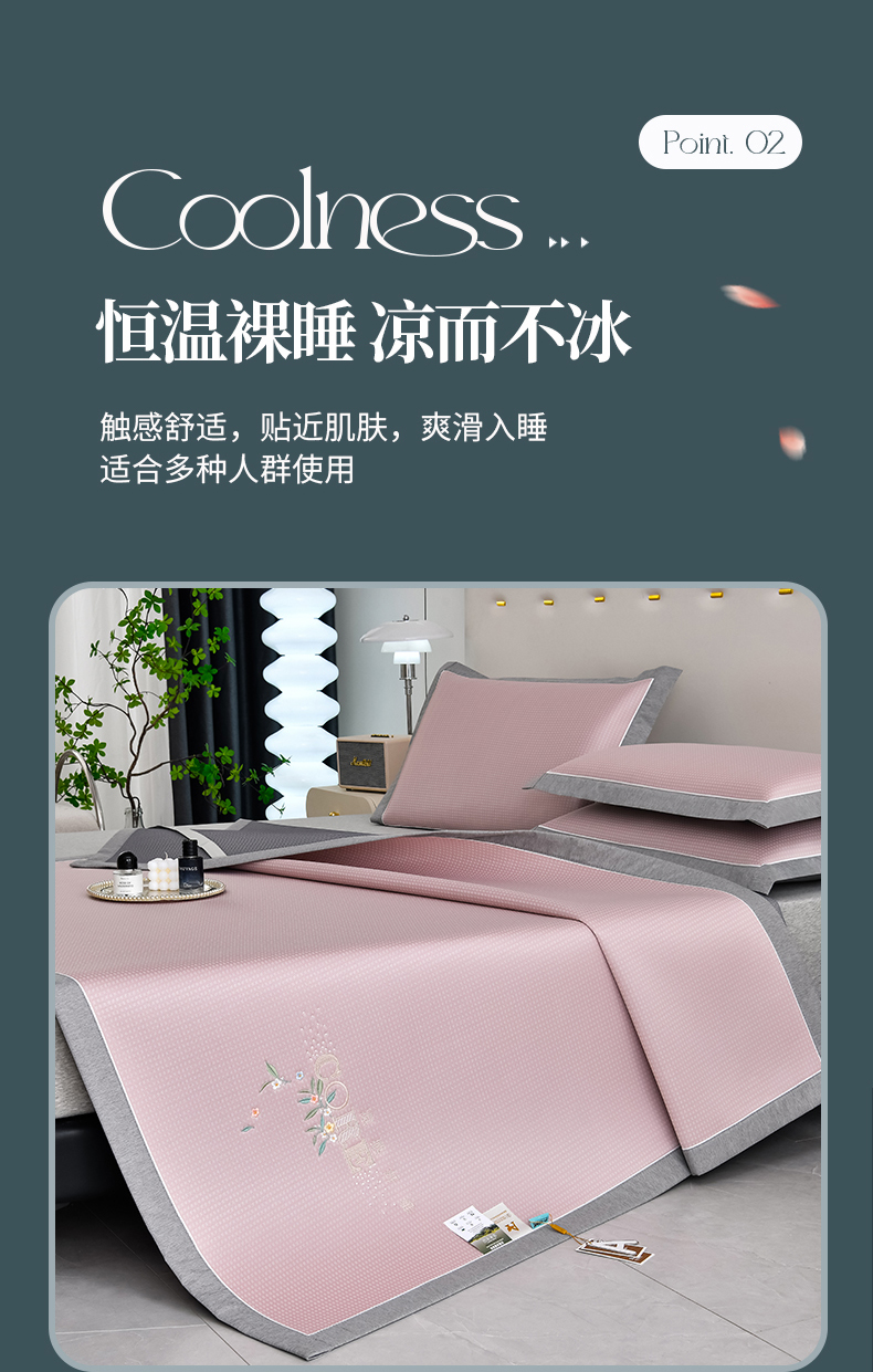 商品名称:小牛席业 2026新款花漾芯语绣花凉感冰丝席系列凉席藤席冰藤席冰丝席草席竹席乳胶席凉感豆豆席 粉色