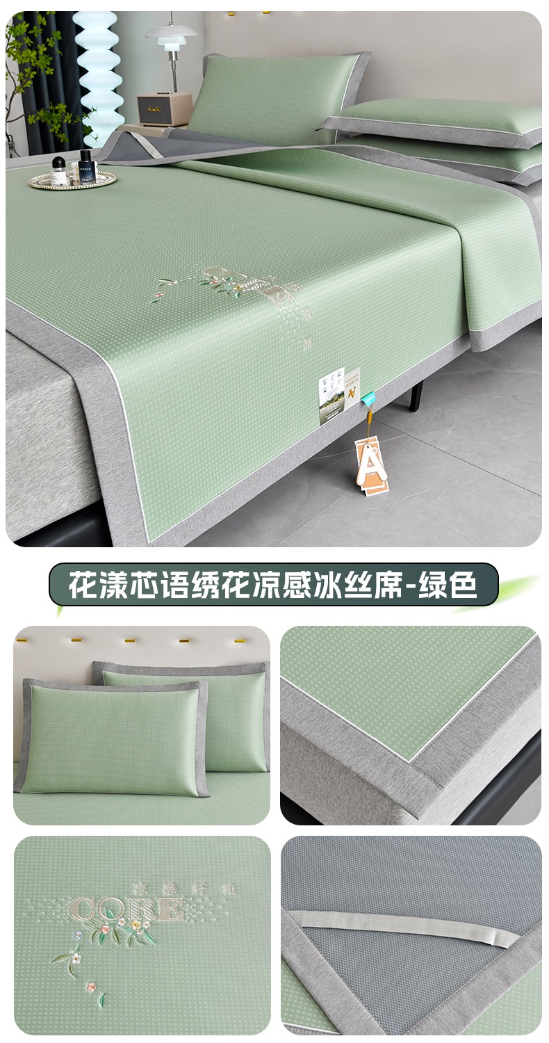 (总)2023新款超精密冰丝席-小斜纹系列-床笠款藤席凉席竹席,粉色,蓝色,绿色,银灰