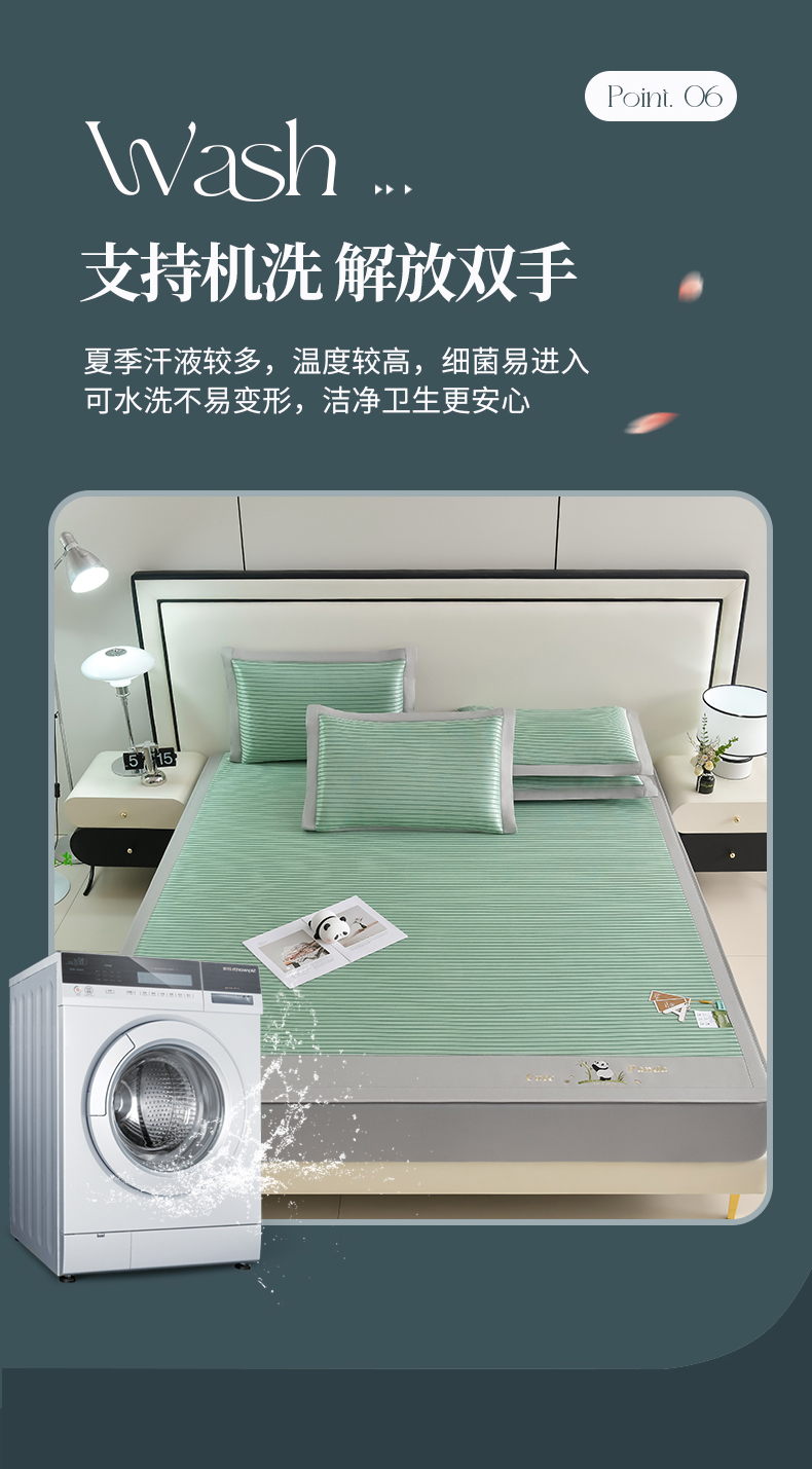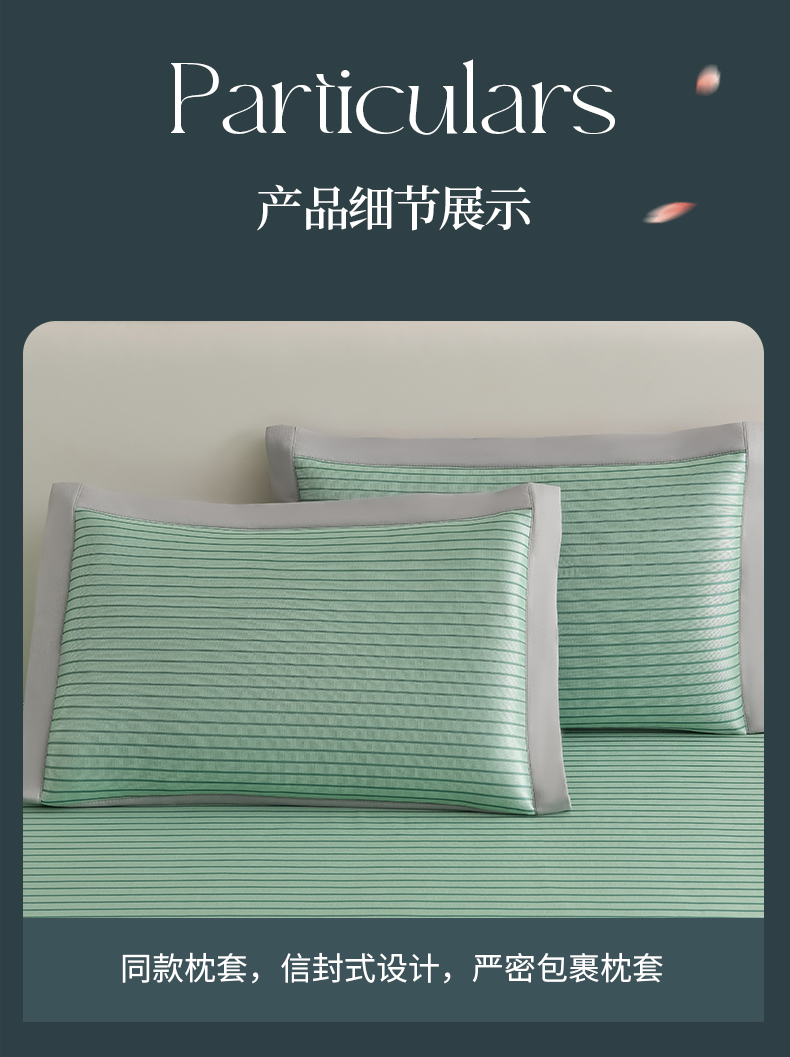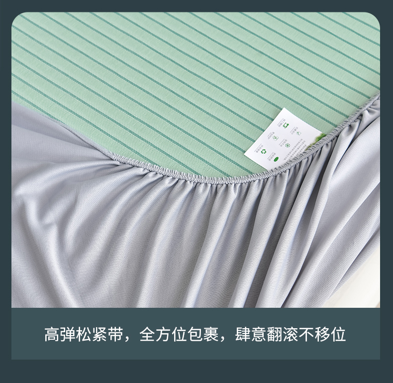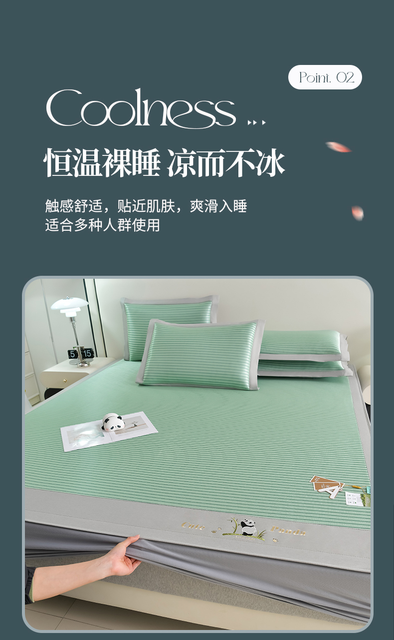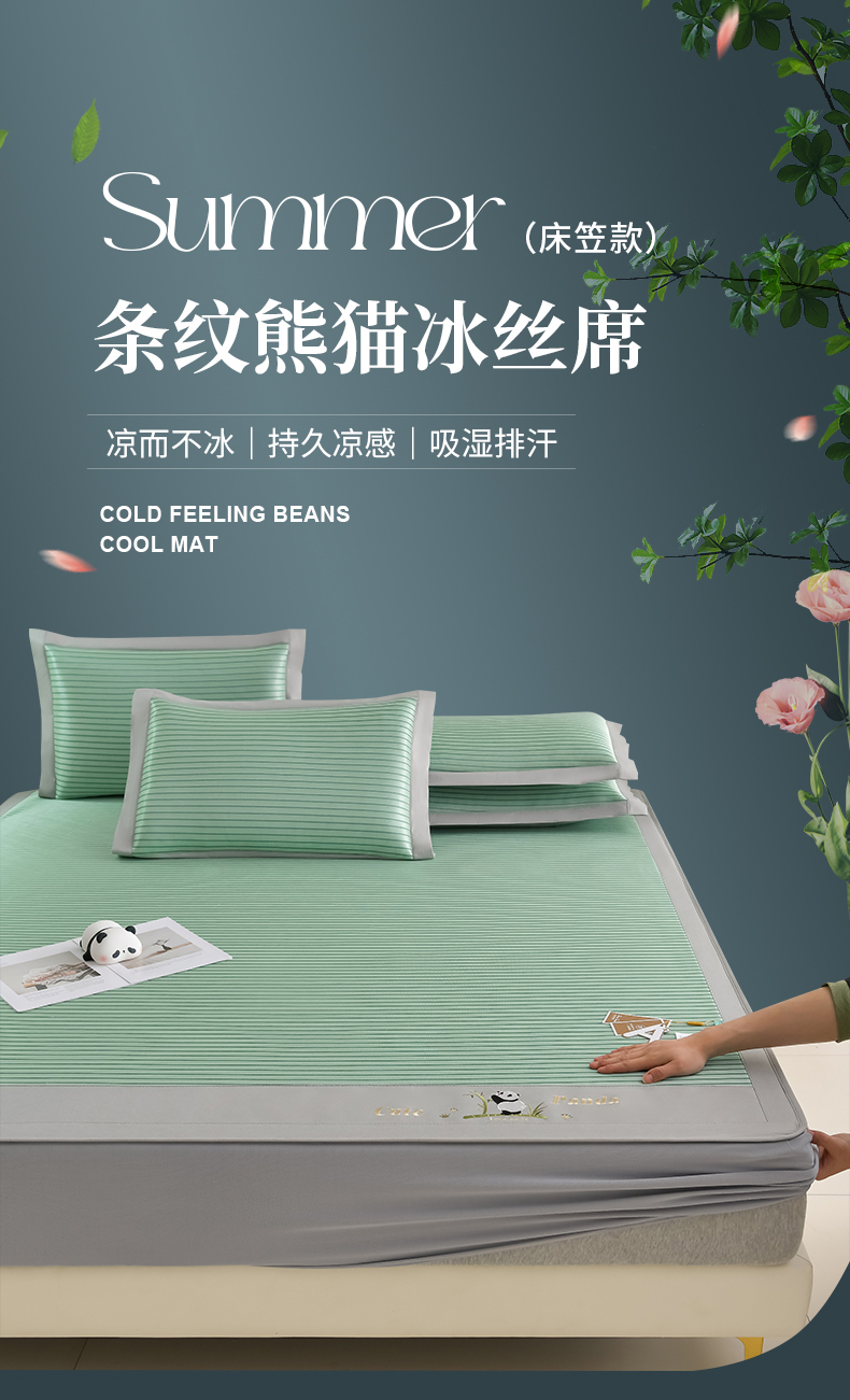 商品名称:小牛席业 2026新款条纹爱家熊猫冰丝席(床笠款)藤席冰藤席冰丝席可机洗凉感冰丝席豆豆席PE霸王 绿色