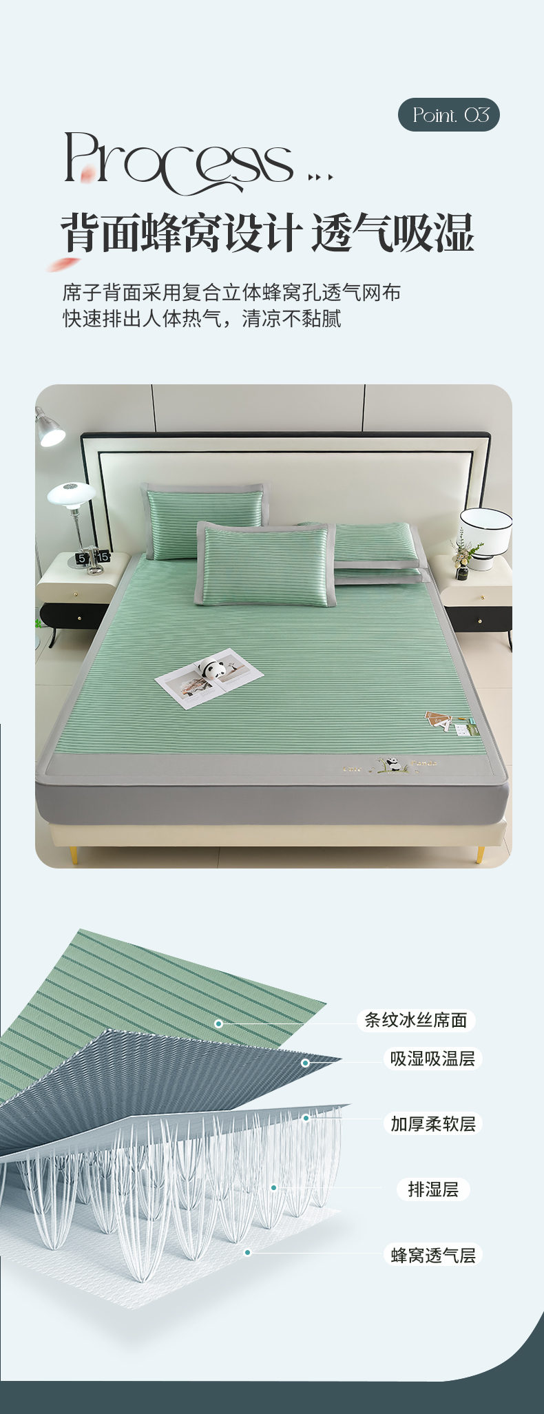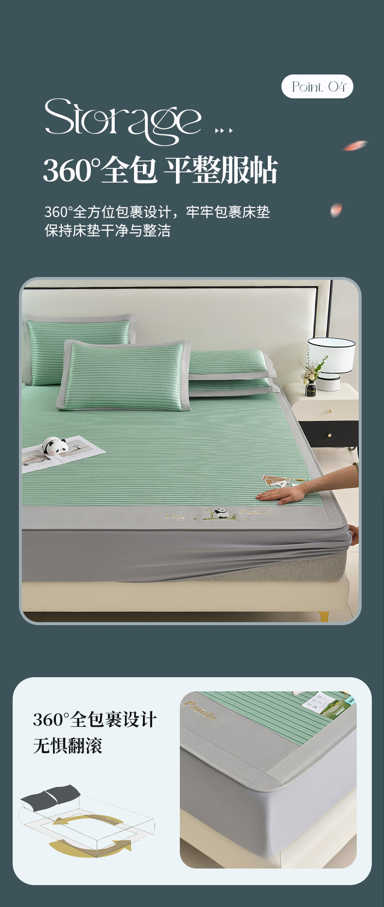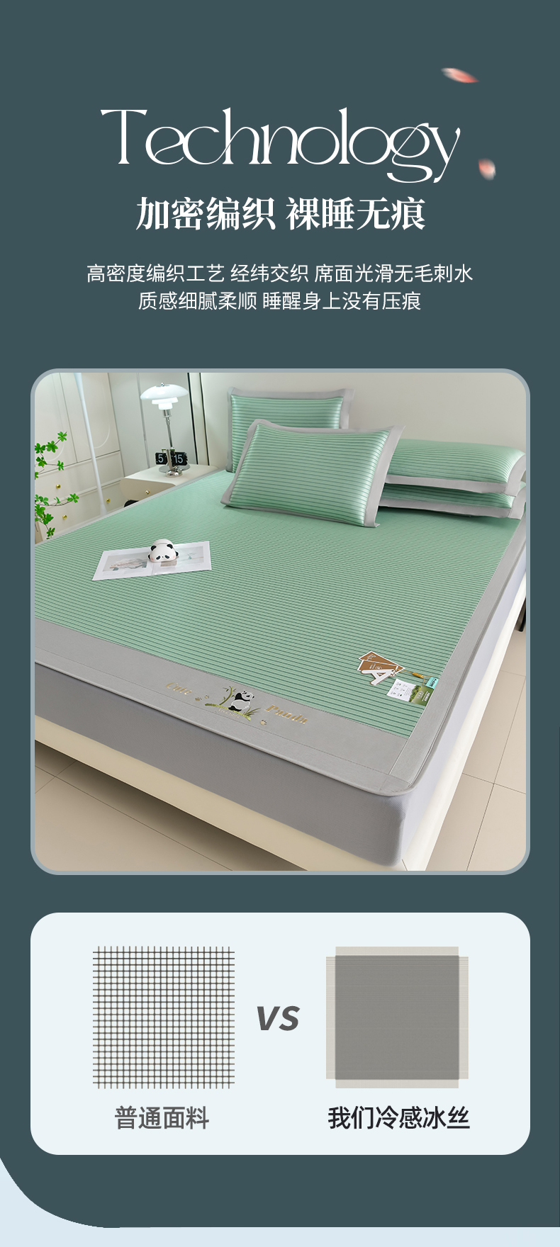 商品名称:小牛席业 2026新款条纹爱家熊猫冰丝席(床笠款)藤席冰藤席冰丝席可机洗凉感冰丝席豆豆席PE霸王 绿色