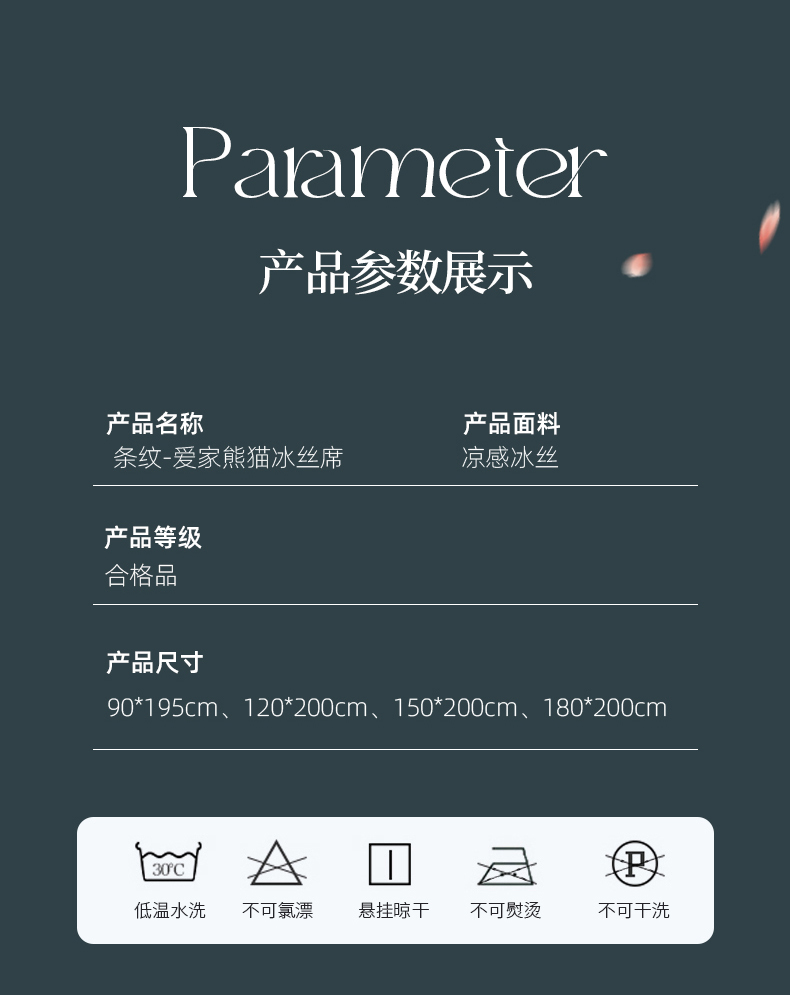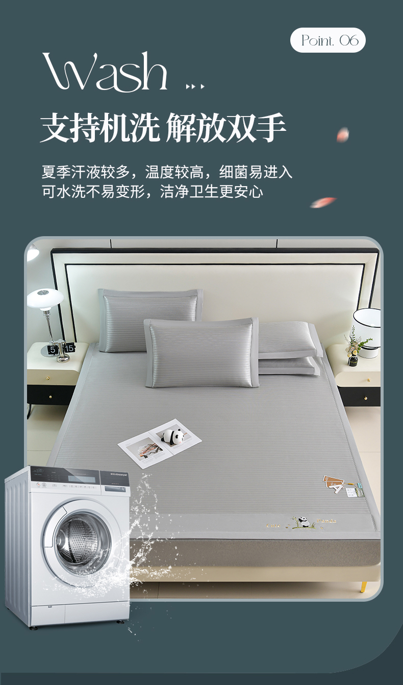 商品名称:小牛席业 2026新款条纹爱家熊猫冰丝席藤席冰藤席冰丝席可机洗凉感冰丝席豆豆席PE霸王 灰色
