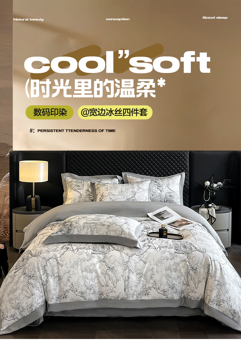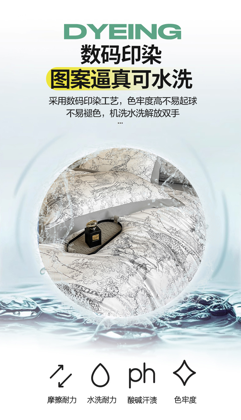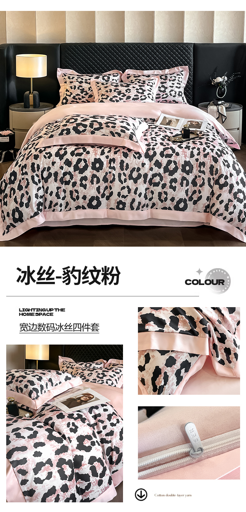 (总)首尔家纺 2026春夏新款宽边数码冰丝四件套,巴洛克粉,豹纹粉,豹纹咖,孔雀舞咖,石榴花粉,石榴花咖,巴洛克灰