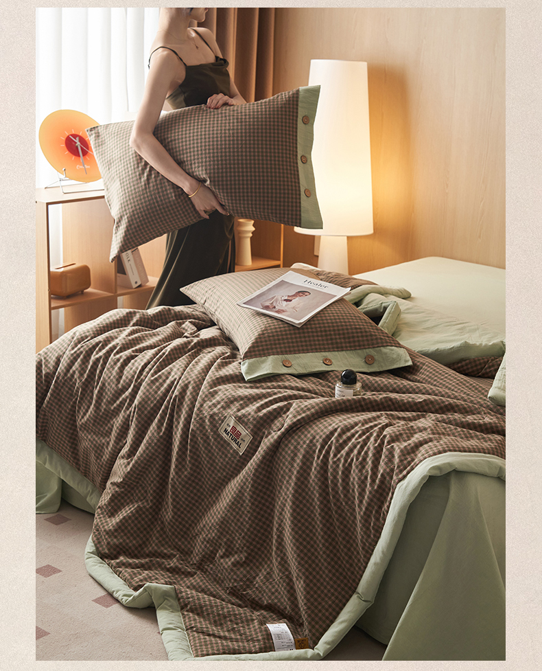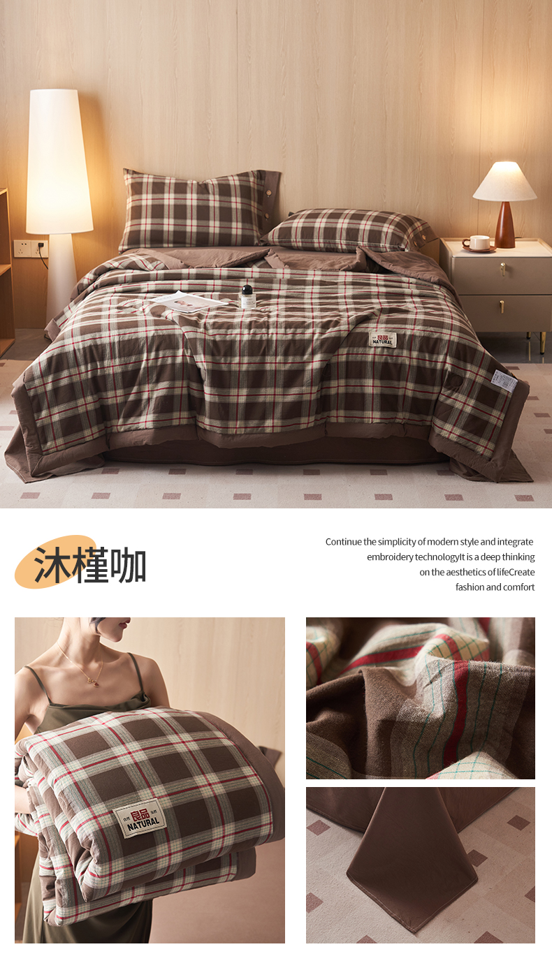 • 91家纺网 家纺一手货源 找家纺 恬思语家纺 2026春夏新款全棉加密色织棉花夏凉被夏被四件套-美拉德系列 蓝韵格