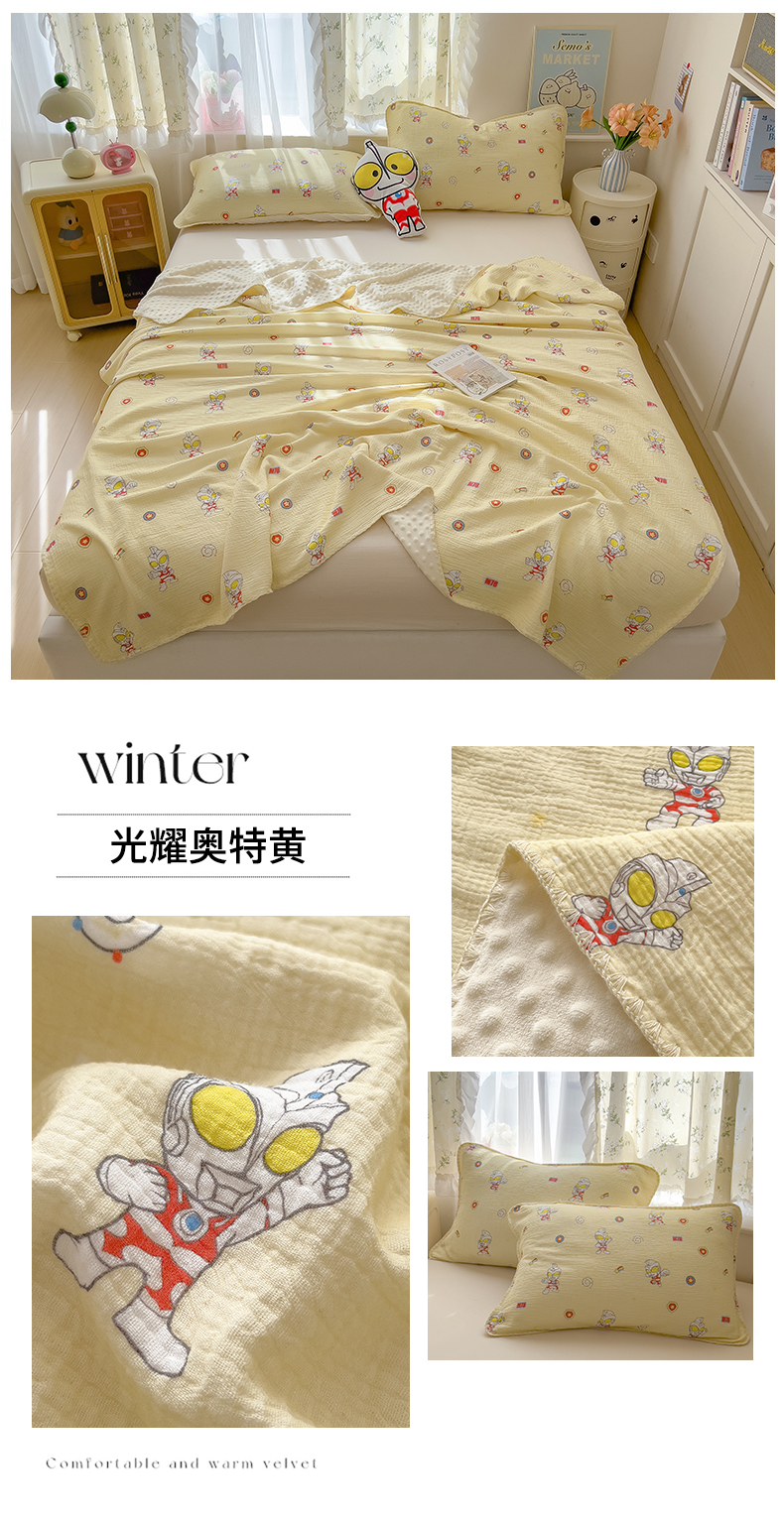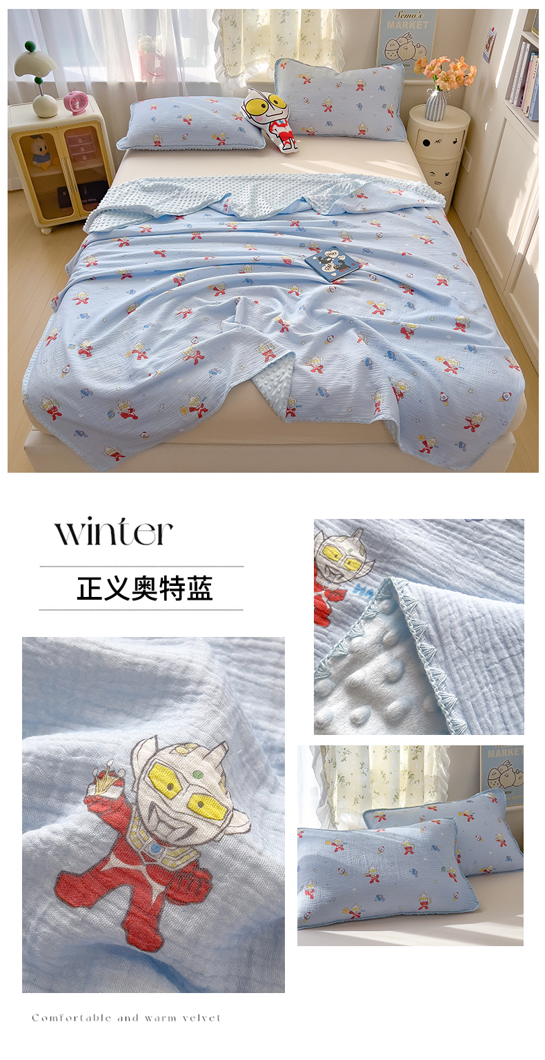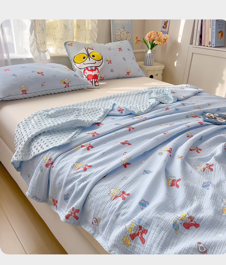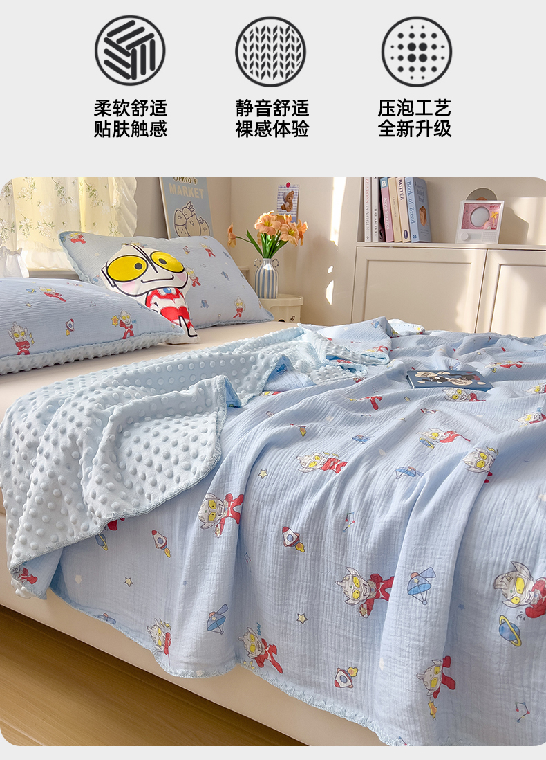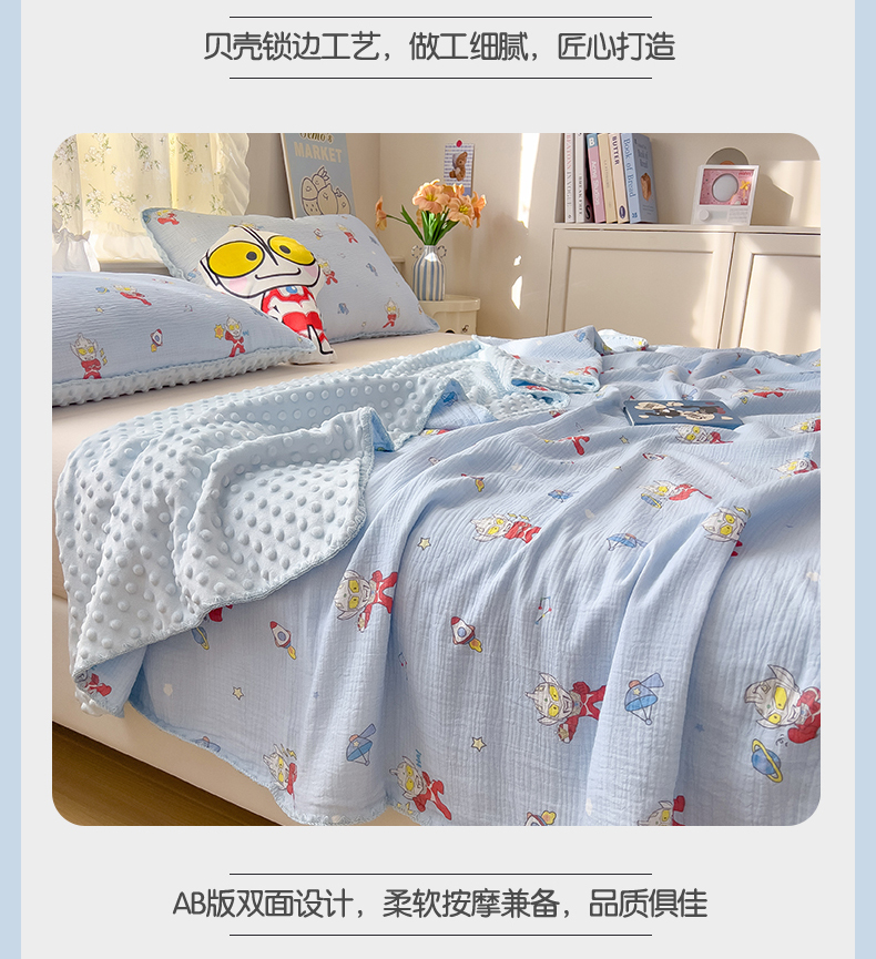(总)兄弟坊 2026新款正版授权卡通全棉双层纱安抚被夏被纱布豆豆毯学校午睡被,正义奥特蓝,光耀奥特黄,酷酷奥特曼,热情海绵蓝,天真玉桂狗,甜甜凯蒂粉,无忧海绵黄,小小库洛米