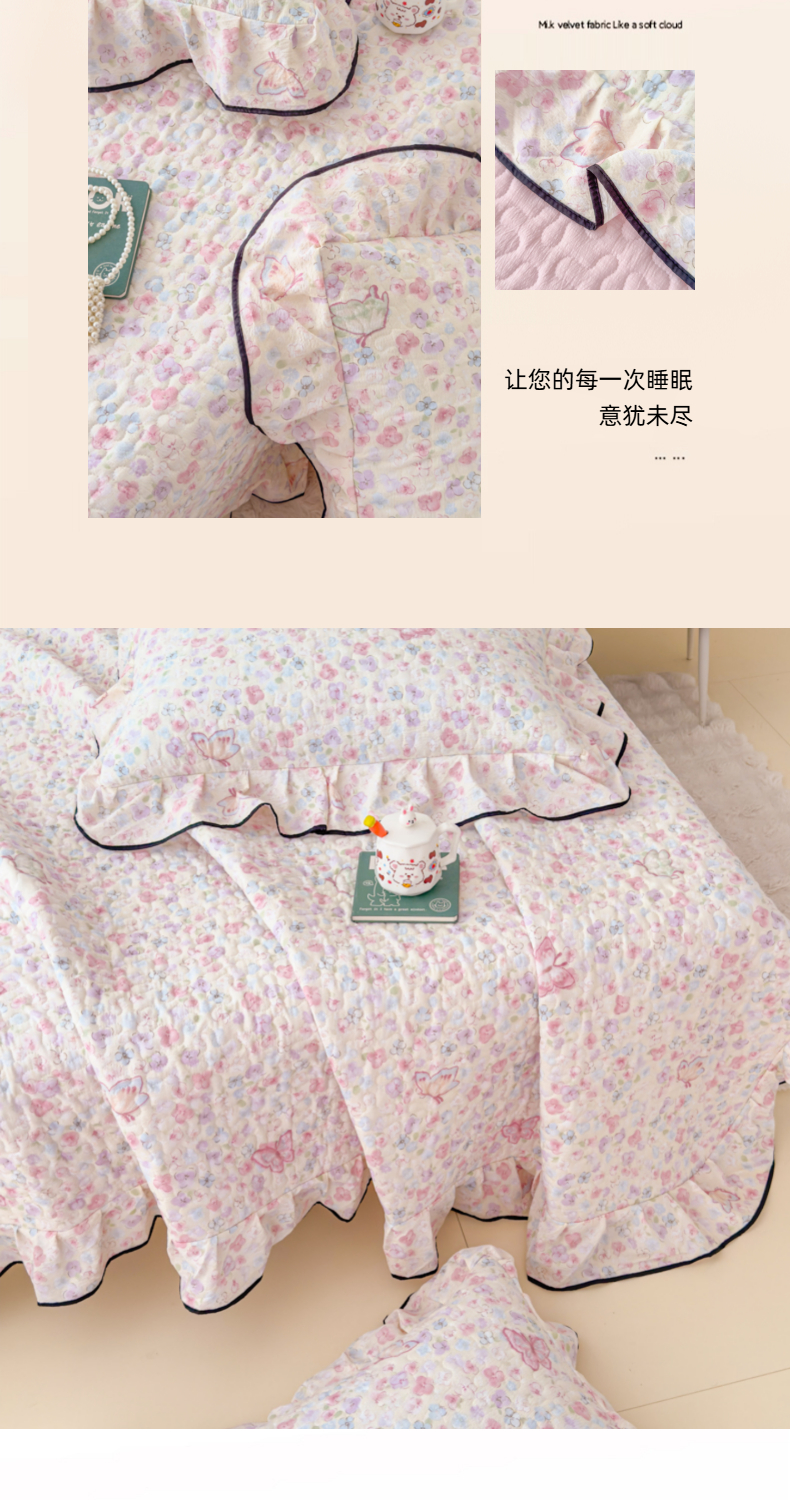 (总)999家纺 2026新款双层纱花边床盖单件加厚夹棉云感皱皱纱花边床单三件套四季跑量(提供买家秀),初见【花边款】,春天里【花边款】,蝶恋花【花边款】,蝴蝶梦【花边款】,花影【花边款】,静初【花边款】,兰黛【花边款】,漫花【花边款】,木兮【花边款】,慕情【花边款】,浅画【花边款】,寻梦粉【花边款】,寻梦紫【花边款】,樱桃格【花边款】,紫韵【花边款】
