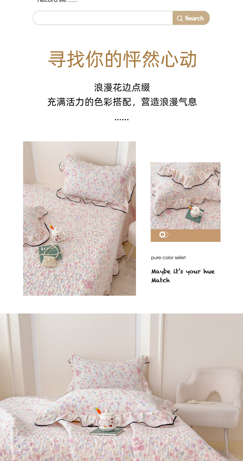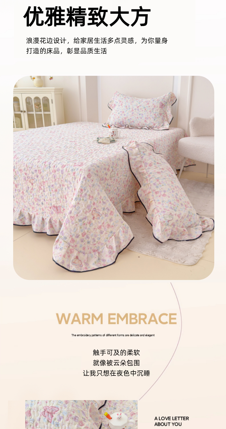 • 91家纺网 家纺一手货源 找家纺 (总)999家纺 2026新款双层纱花边床盖单件加厚夹棉云感皱皱纱花边床单三件套四季跑量(提供买家秀),初见【花边款】,春天里【花边款】,蝶恋花【花边款】,蝴蝶梦【花边款】,花影【花边款】,静初【花边款】,兰黛【花边款】,漫花【花边款】,木兮【花边款】,慕情【花边款】,浅画【花边款】,寻梦粉【花边款】,寻梦紫【花边款】,樱桃格【花边款】,紫韵【花边款】