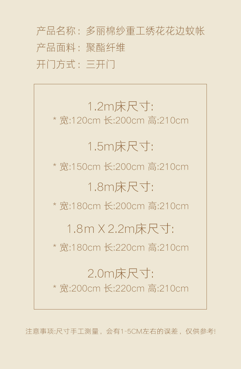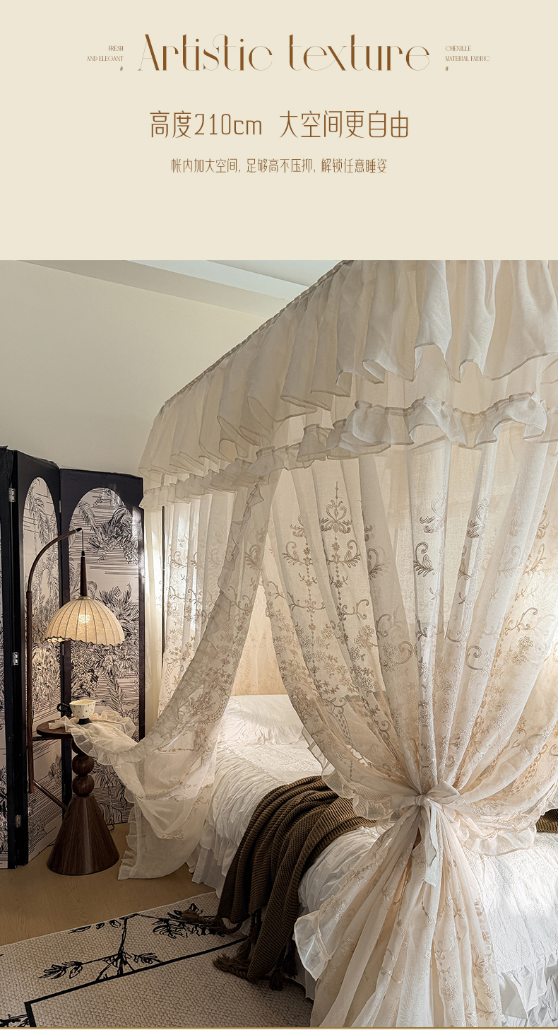 当前位置: 91家纺网 > 商品网购 > 床上用品 > 蚊帐 > 宫廷蚊帐 > (总)都市缘蚊帐 2026年新款3303多丽棉绣花工艺导轨宫廷蚊帐