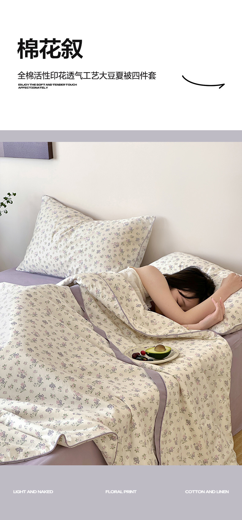 • 91家纺网 家纺一手货源 找家纺 一加一 2026新款活性印花透气工艺大豆夏被夏凉被空调被四件套-棉花叙 组合图仅供展示不可下单