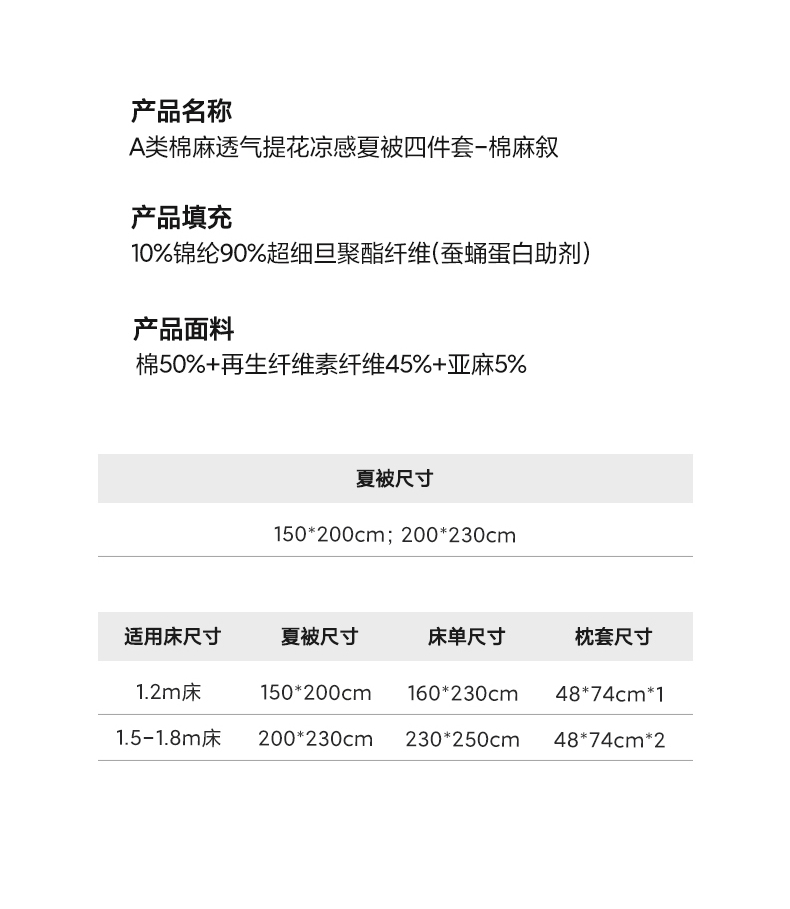 • 适用季节: 空调被/夏凉被