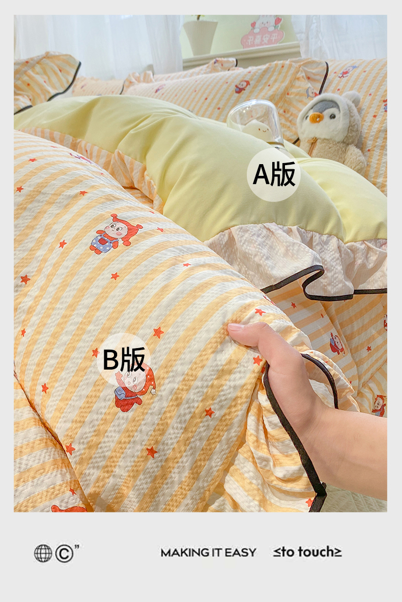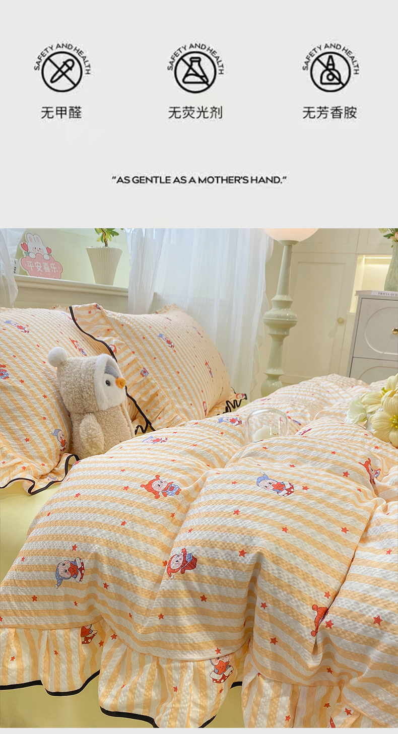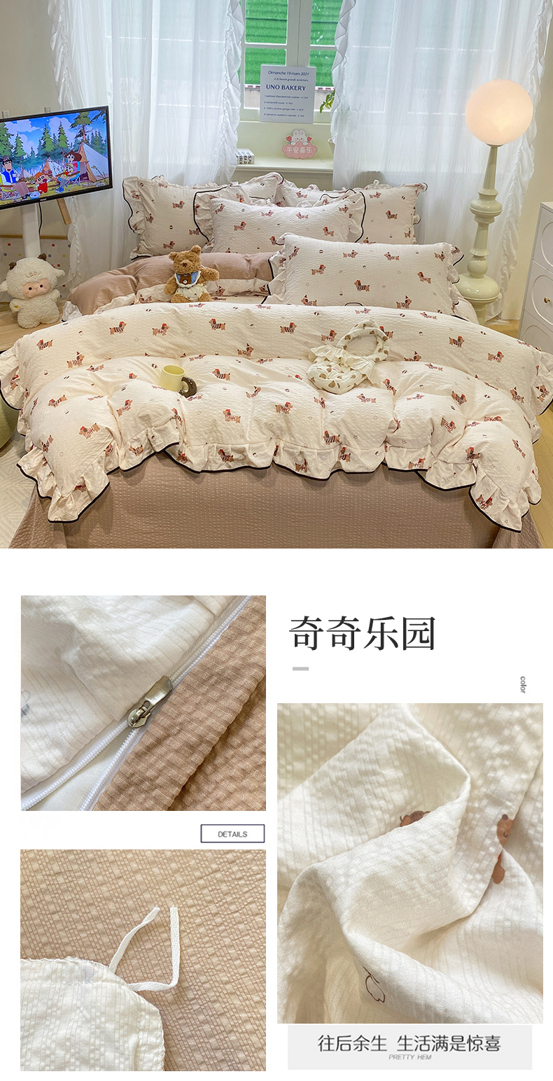 当前位置: 91家纺网 > 商品网购 > 床品套件 > 四件套 > 双层纱四件套 > 优贝家纺 2026新款云感双层纱皱皱纱花边四件套 奇奇乐园