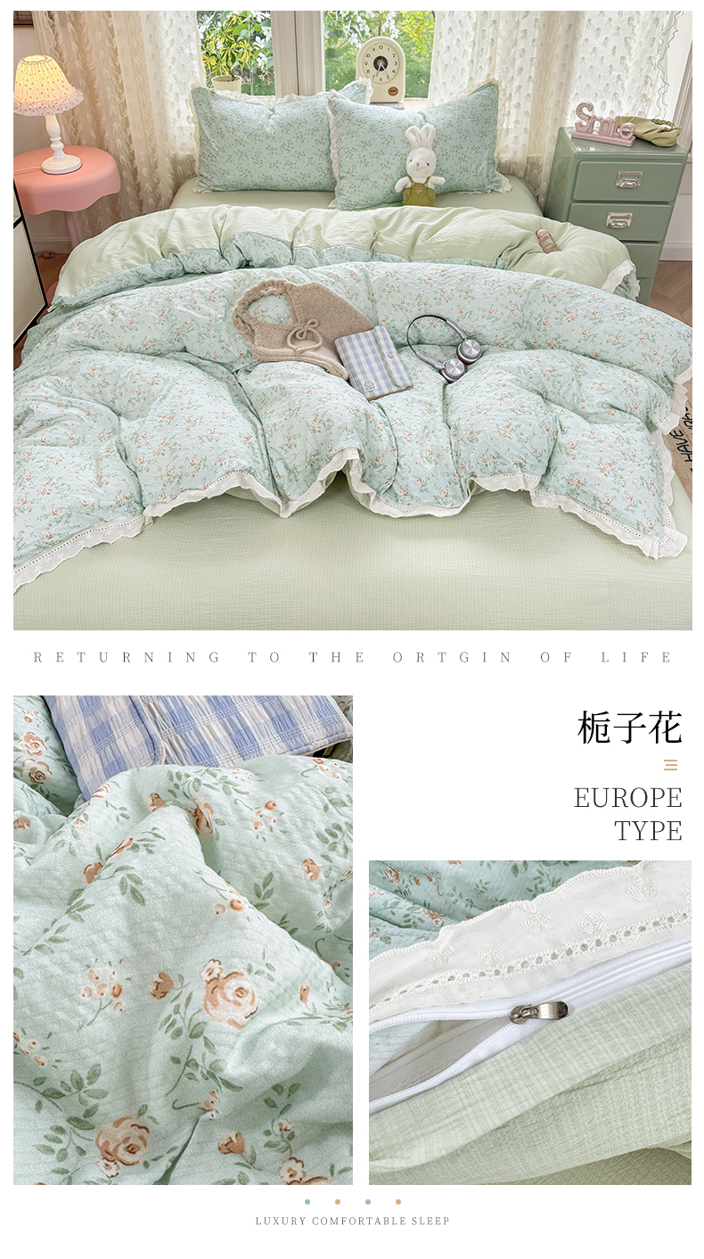 当前位置: 91家纺网 > 商品网购 > 床品套件 > 四件套 > 其它四件套 > 优贝家纺 2026新款云感皱皱纱韩系花边四件套 栀子花