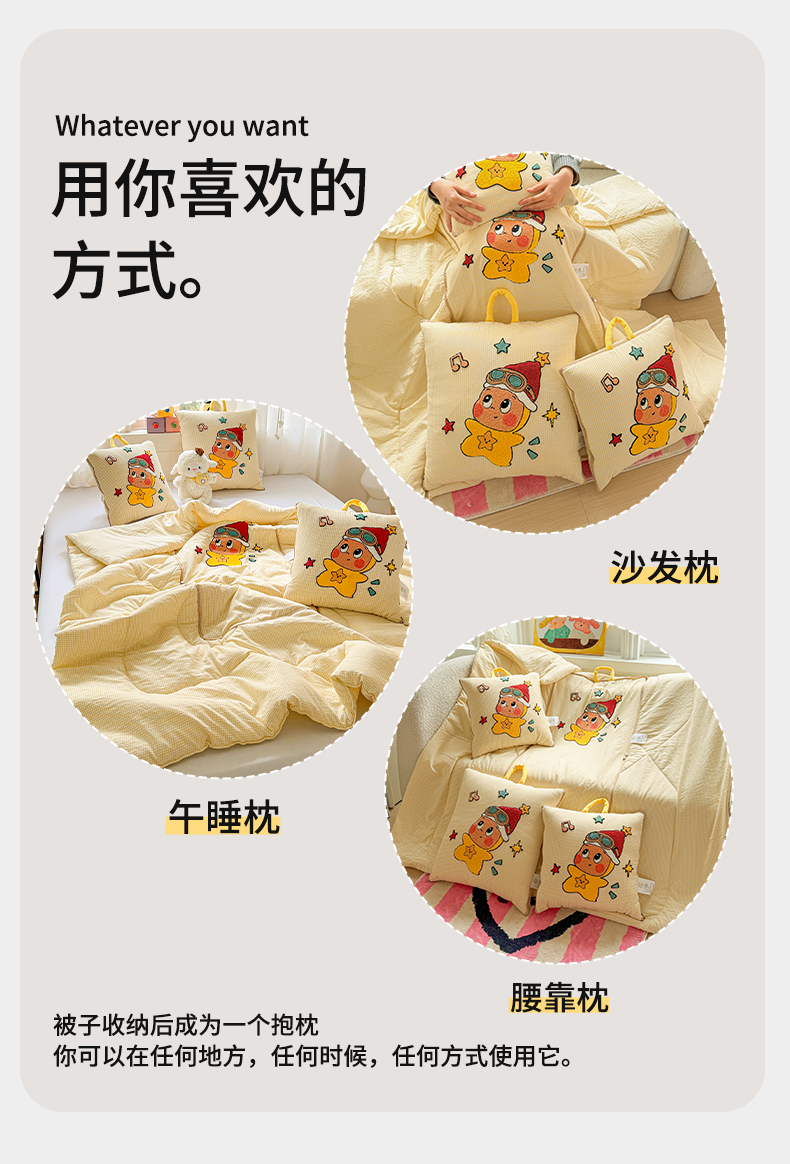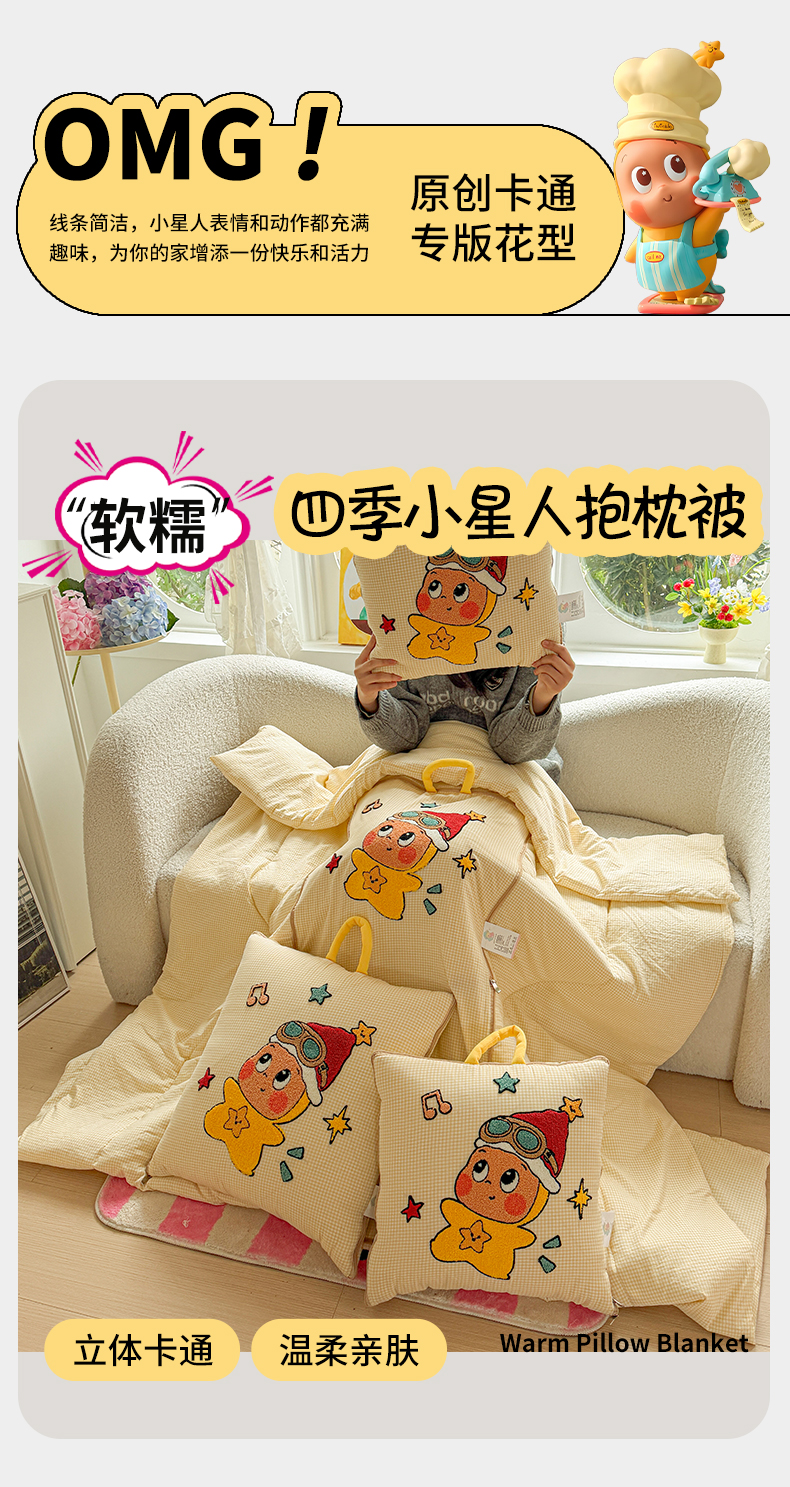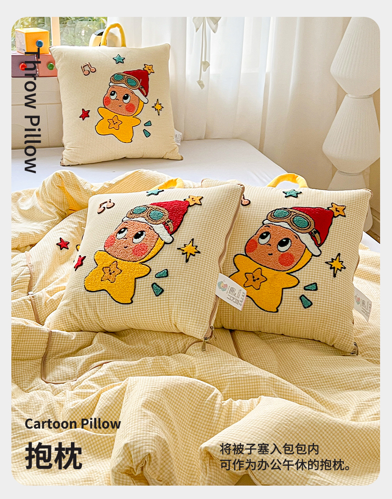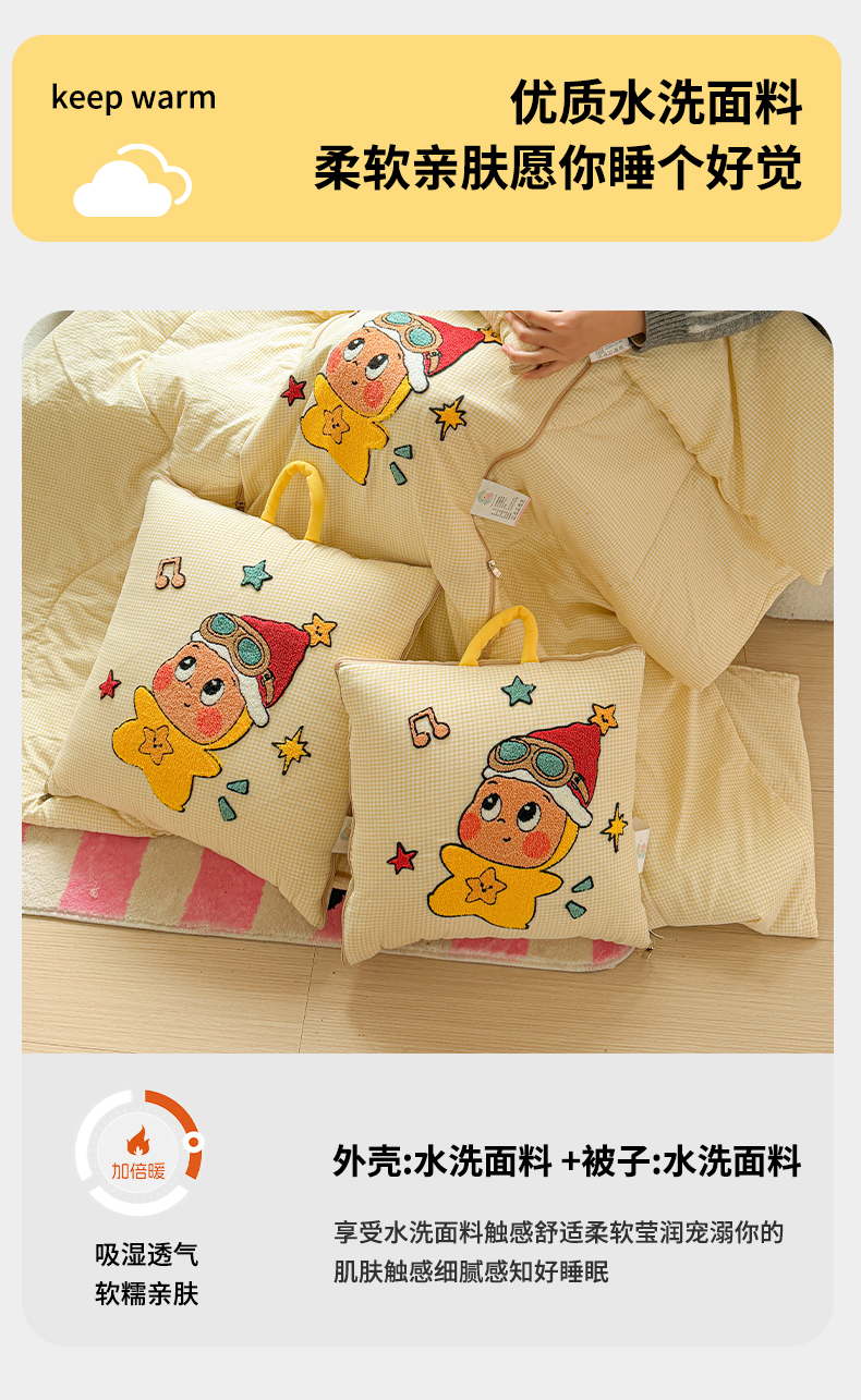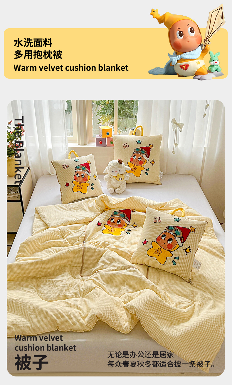 商品名称:古本家居 2026新款四季款水洗小星人抱枕被 四季小星人黄格