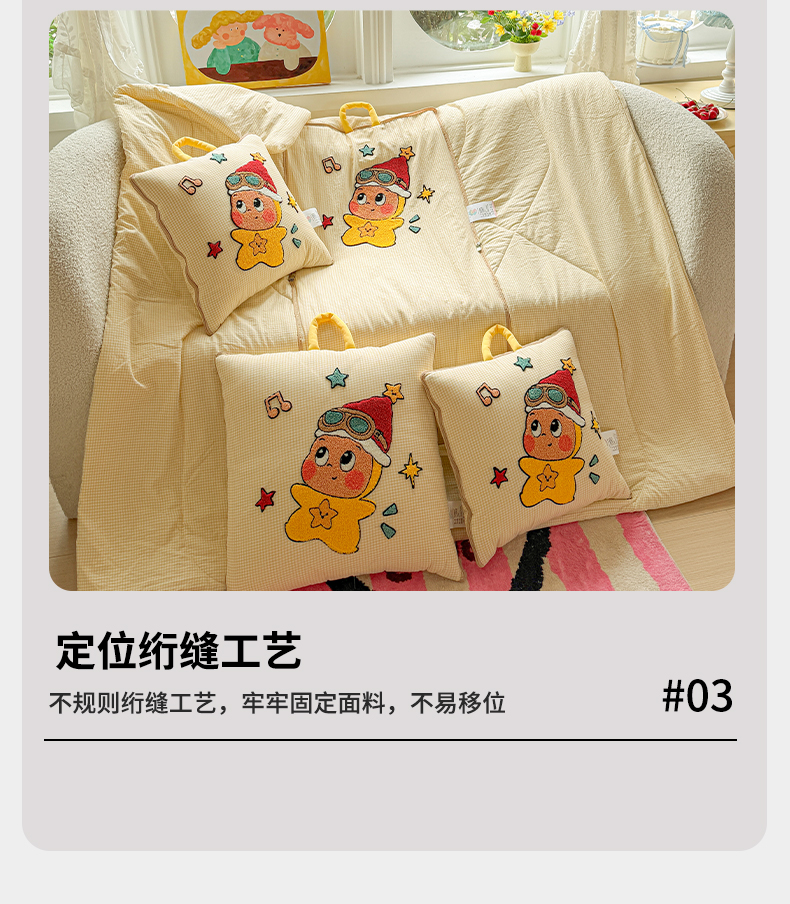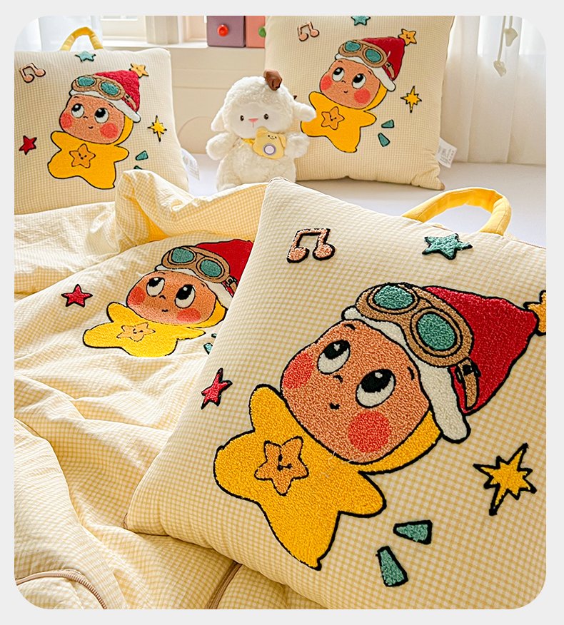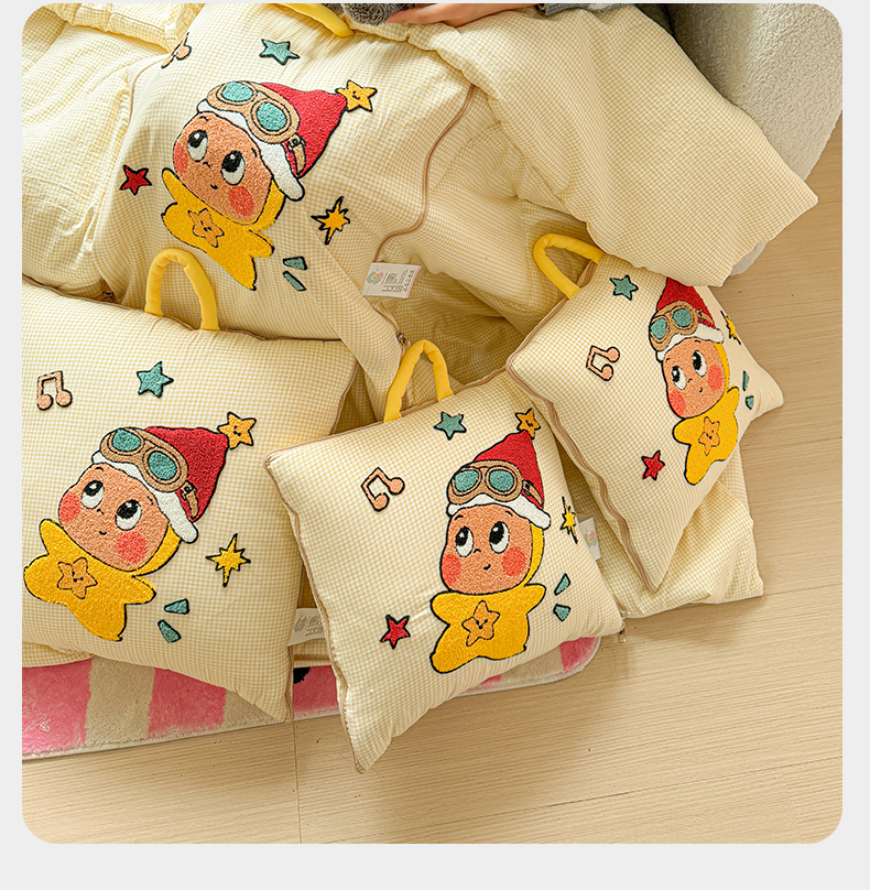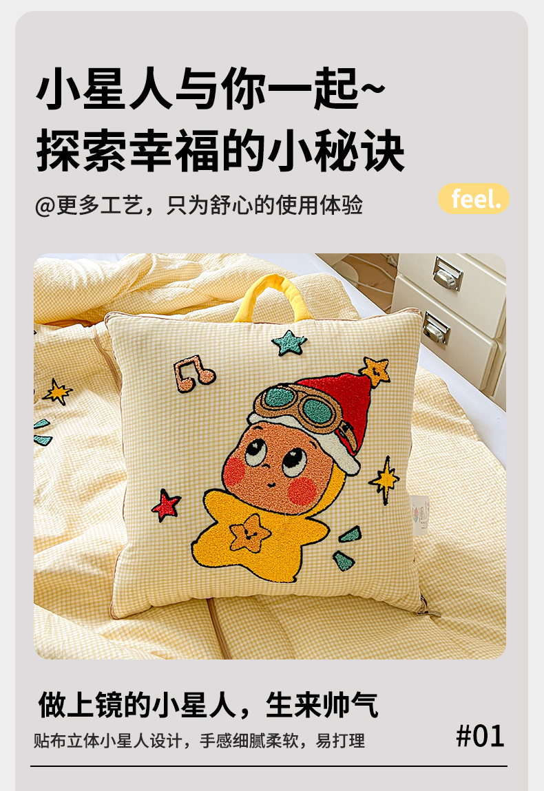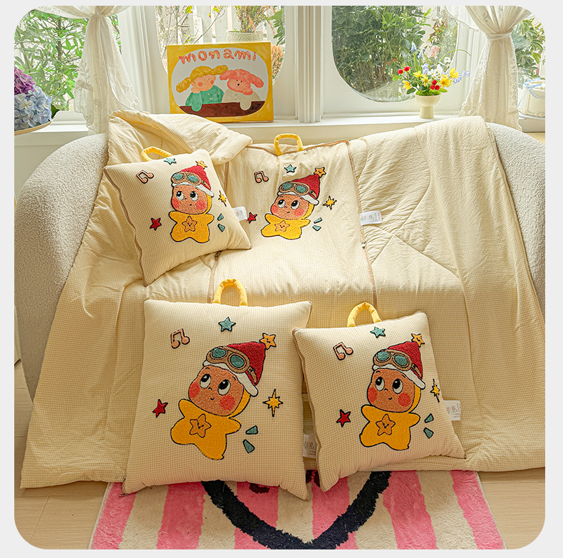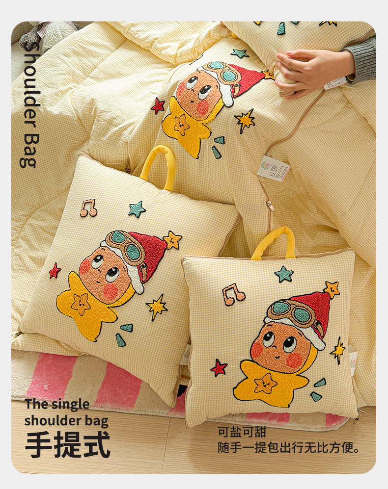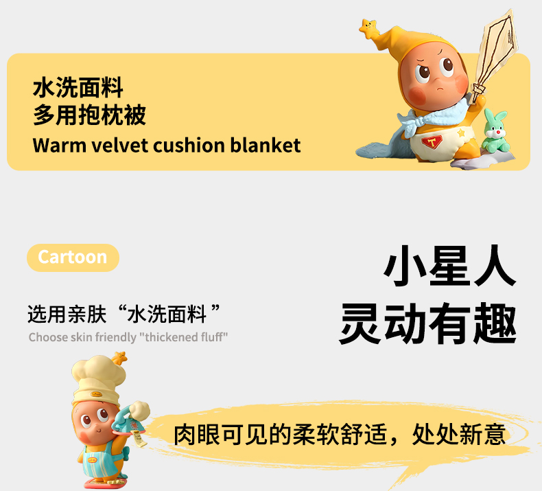 商品名称:古本家居 2026新款四季款水洗小星人抱枕被 四季小星人黄格