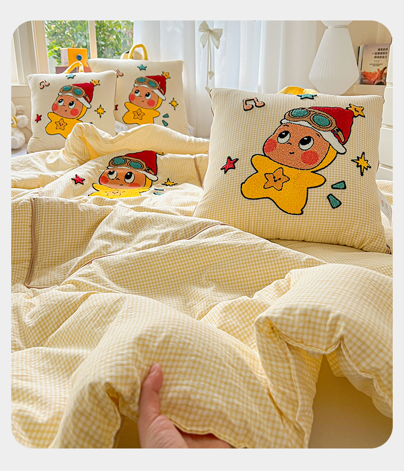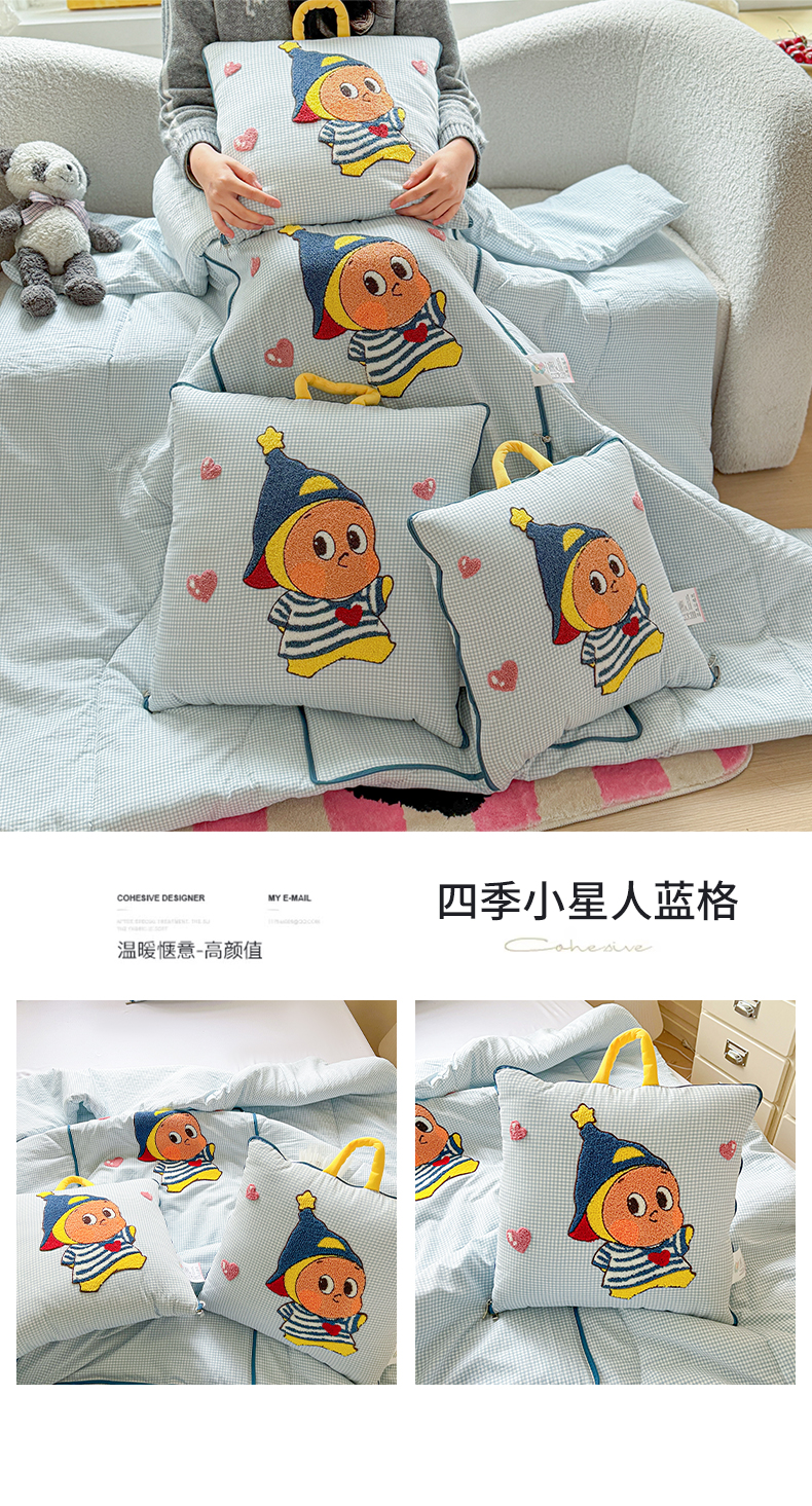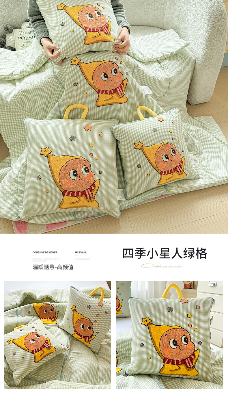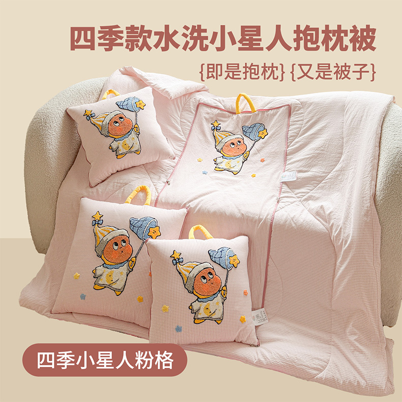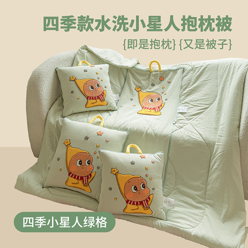 (总)古本家居 2026新款四季款水洗小星人抱枕被,四季小星人绿格,四季小星人粉格,四季小星人黄格,四季小星人蓝格