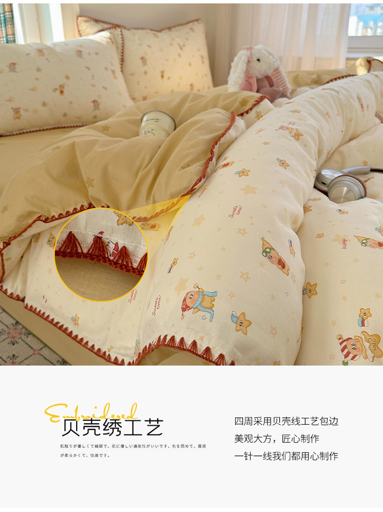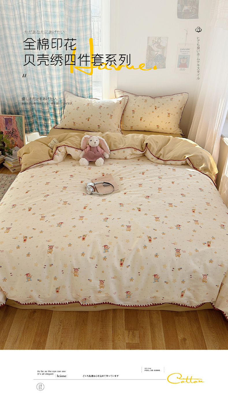 当前位置: 91家纺网 > 商品网购 > 床品套件 > 四件套 > 全棉普通四件套 > 瑞莱 (持续上新)2026新款全棉纯棉印花贝壳边四件套 小町的家