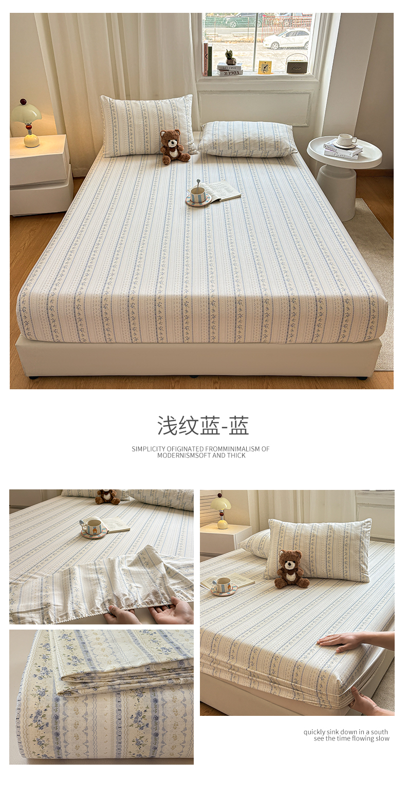 (总)居眠 2025新款防水夹棉床笠-清雅,清雅-粉色,清雅-灰色,清雅-卡其,清雅-绿色,清雅-米白,清雅-深蓝
