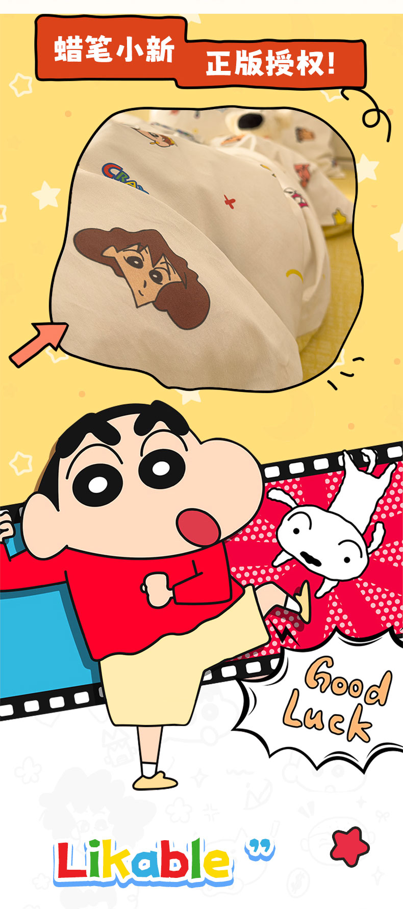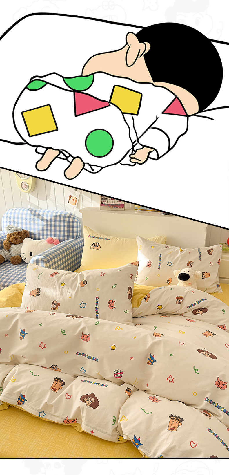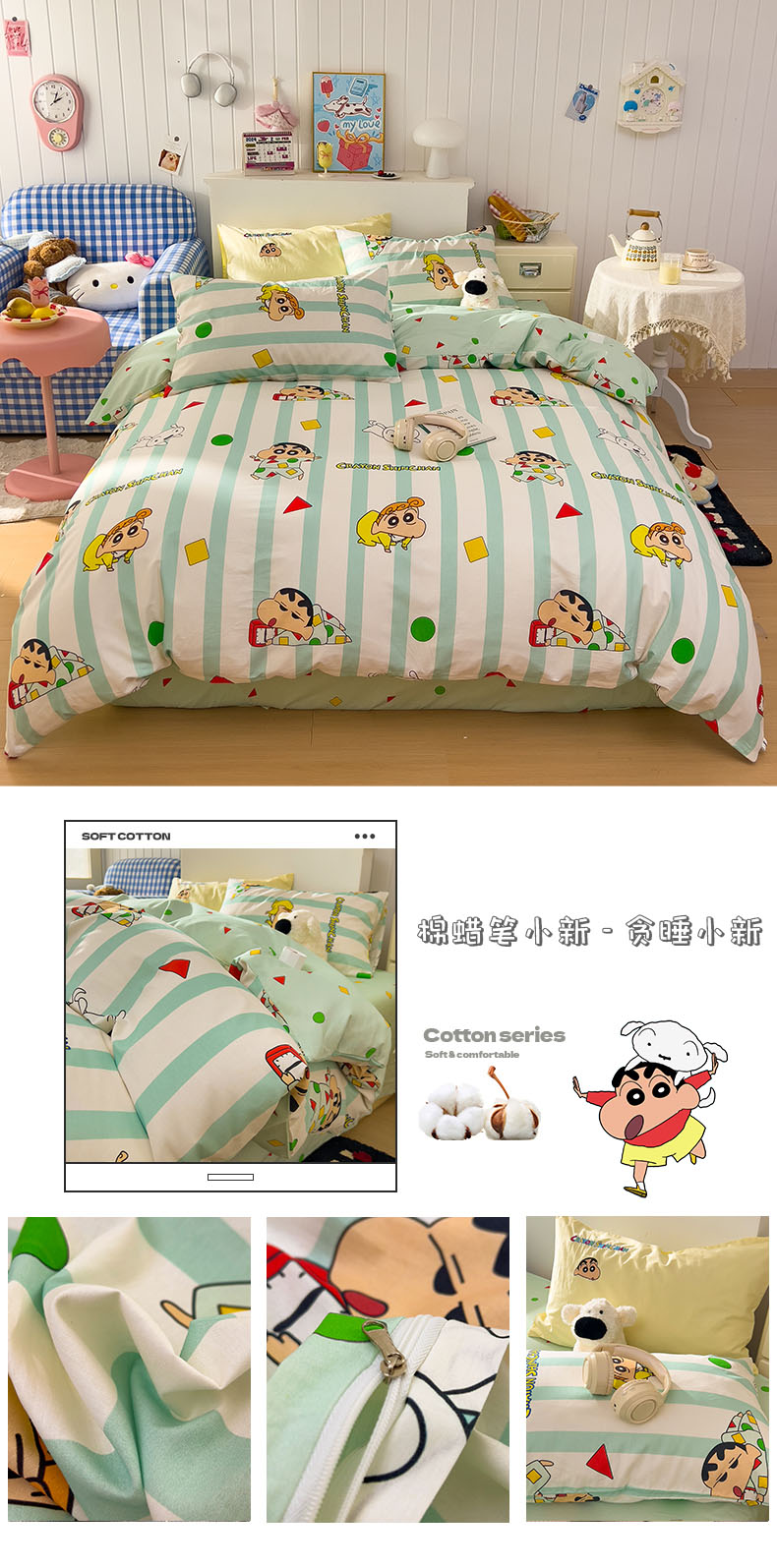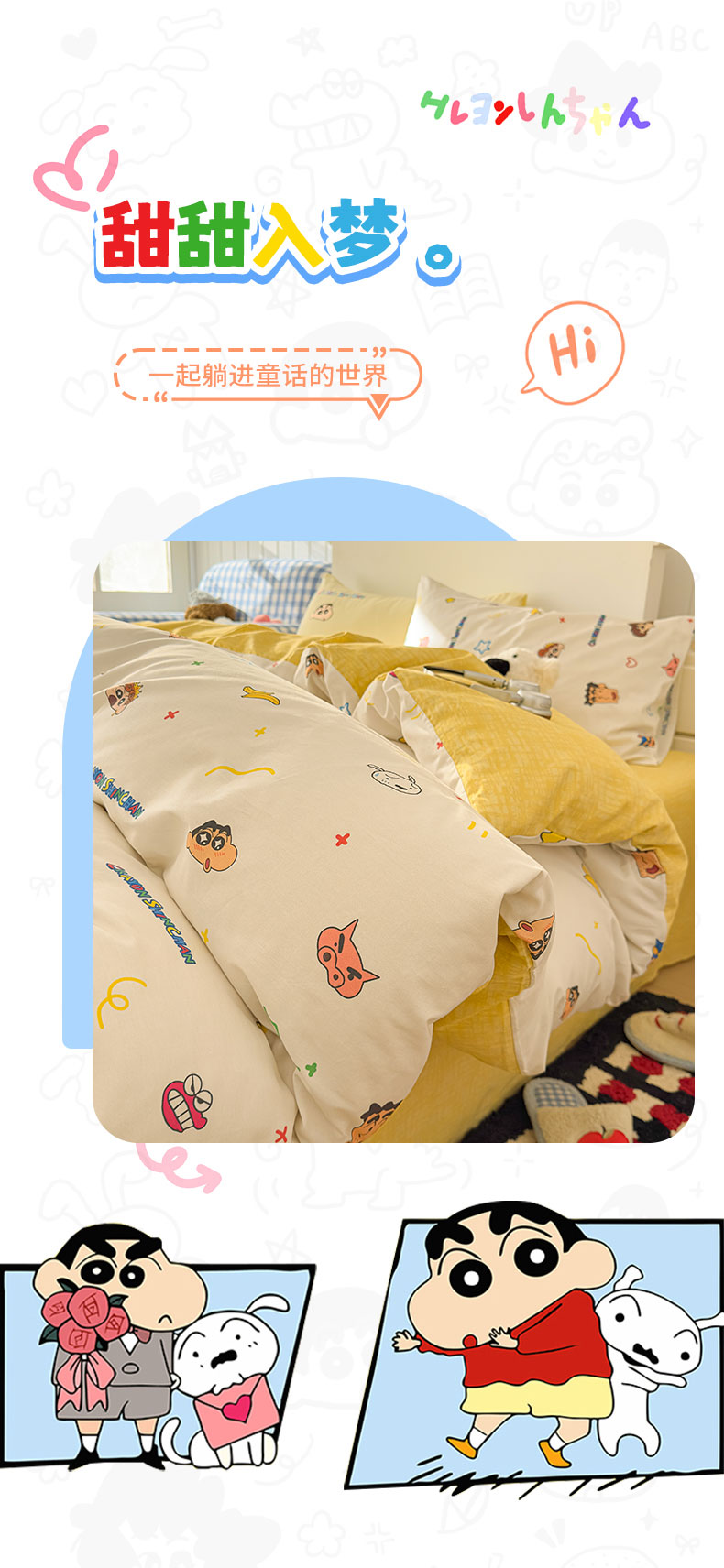 当前位置: 91家纺网 > 商品网购 > 床品套件 > 四件套 > 其它四件套 > 桃子家居 2026新款A类蜡笔小新正版授权刺绣混搭枕套卡通印花系列四件套 棉蜡笔小新-幸福小新